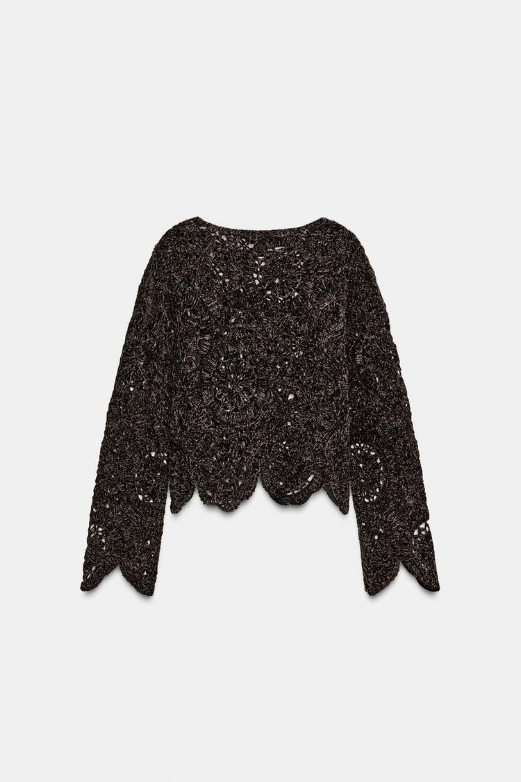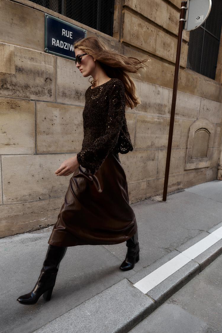ZARA ТОП КРОШЕ С ДЛИННЫМИ РУКАВАМИ, ТЕМНО-КОРИЧНЕВЫЙ