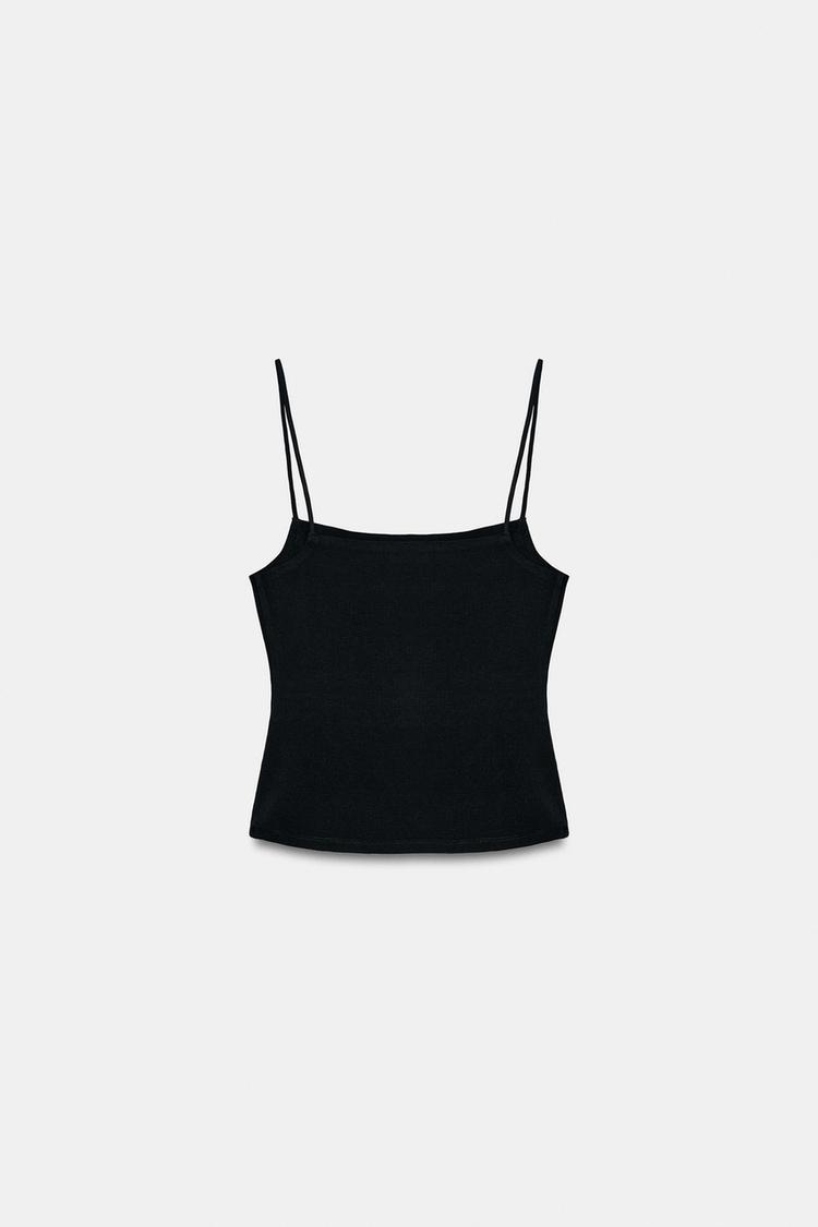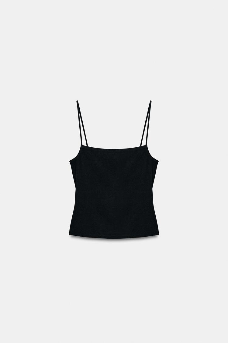 ZARA ТОП НА БРЕТЕЛЯХ С КВАДРАТНЫМ ВЫРЕЗОМ, ЧЕРНЫЙ
