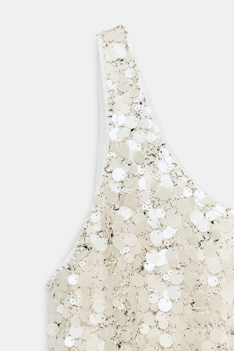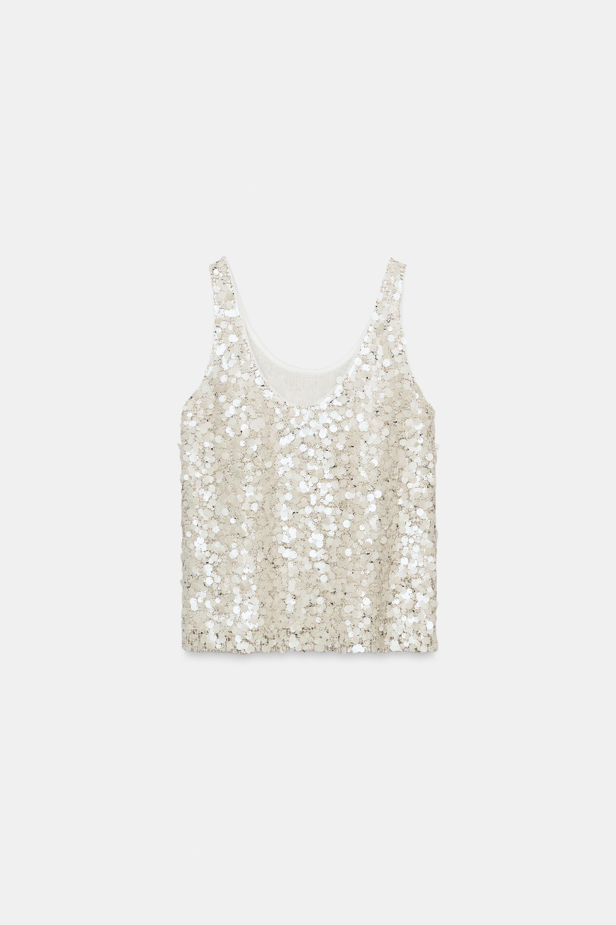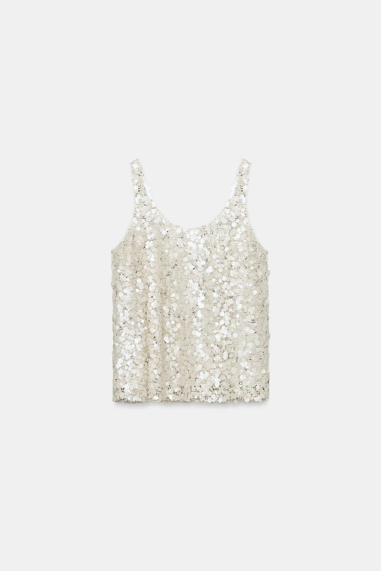 ZARA ТОП НА БРЕТЕЛЯХ С ПАЙЕТКАМИ, СВЕТЛО-БЕЖЕВЫЙ