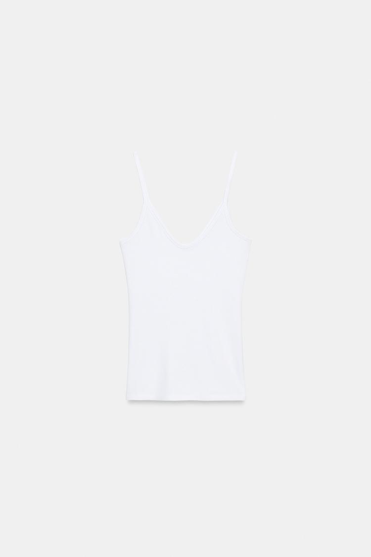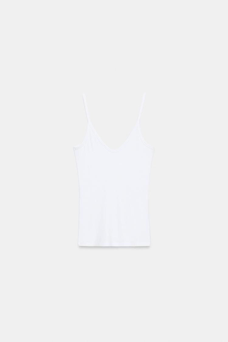 ZARA ТОП НА БРЕТЕЛЯХ В РУБЧИК, БЕЛЫЙ