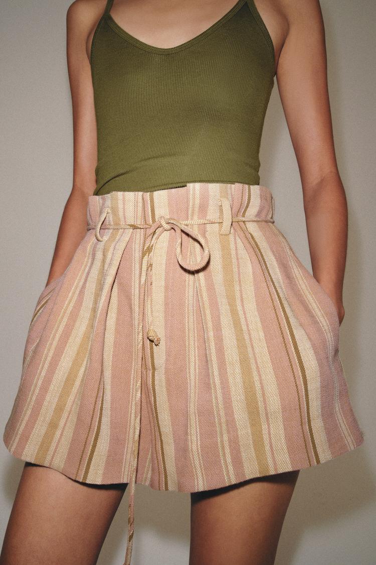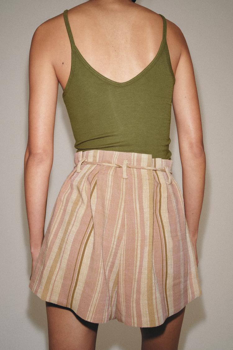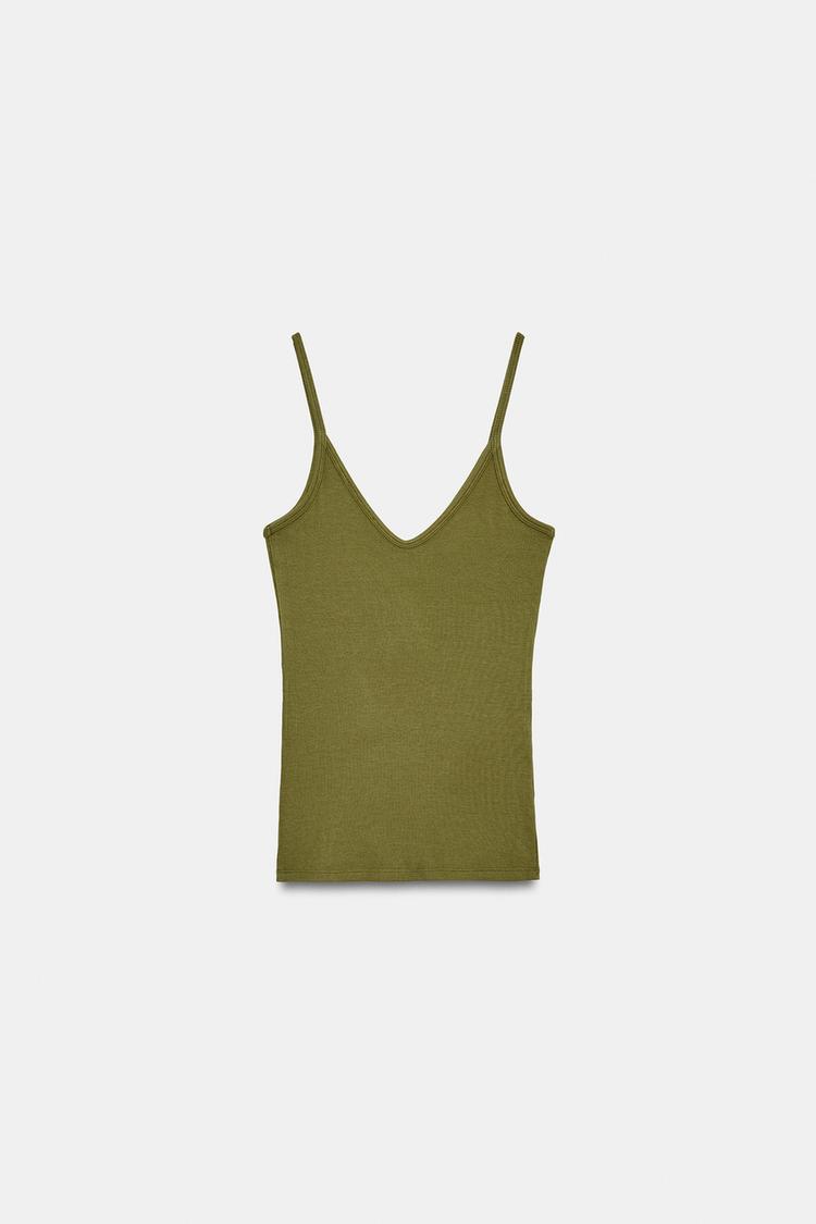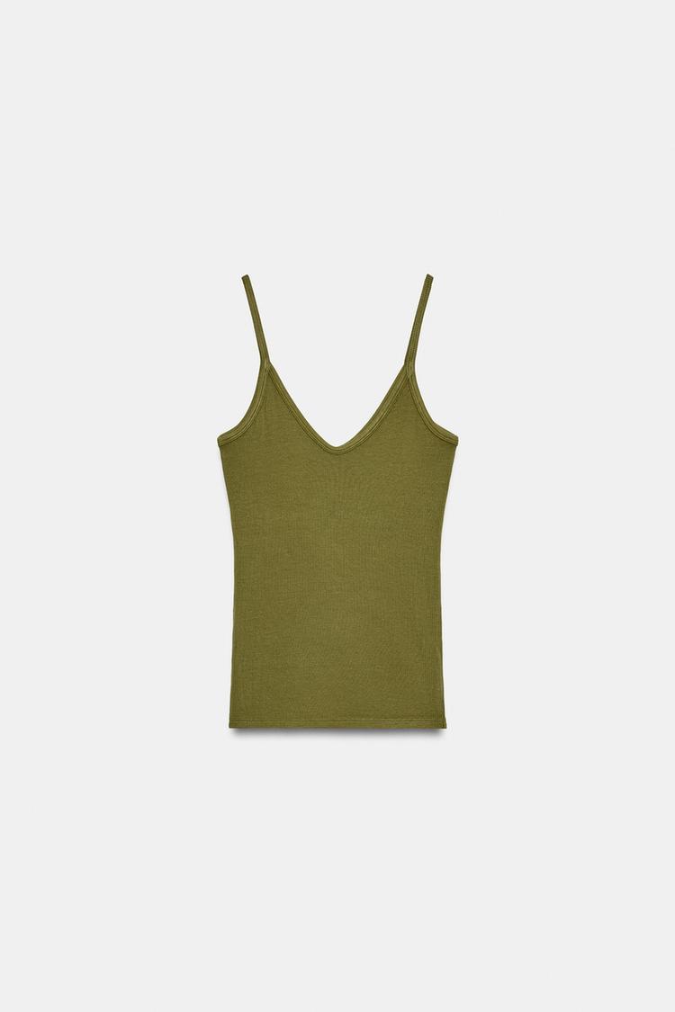 ZARA ТОП НА БРЕТЕЛЯХ В РУБЧИК, ТЕМНО-ОЛИВКОВЫЙ