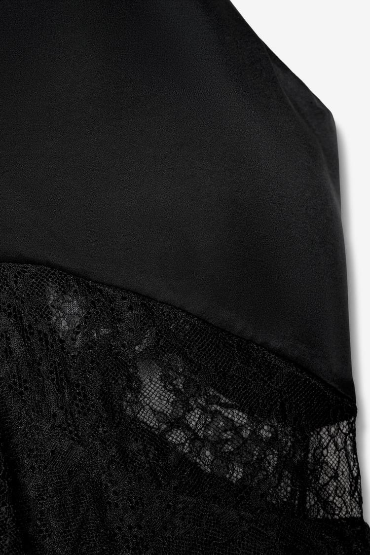 Топ с V-образным вырезом и тонкими бретелями. Детали из кружевной аппликации. Асимметричный подол.