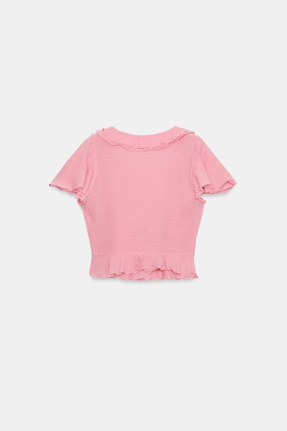 ZARA ТОП НА ЗАПÁХЕ С ВОЛАНАМИ, РОЗОВЫЙ