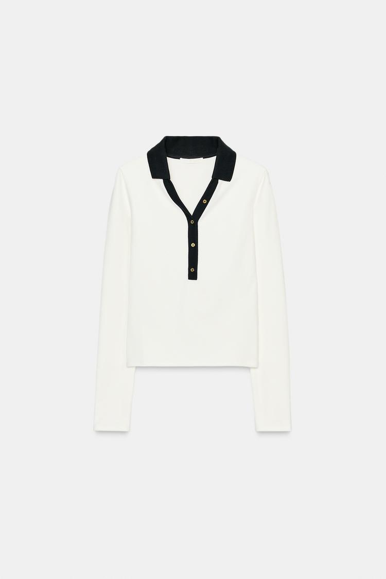 ZARA ТОП ПОЛО ИЗ ТКАНИ ИНТЕРЛОК С КОНТРАСТНЫМИ ЭЛЕМЕНТАМИ, ЖЕЛТОВАТО-БЕЛЫЙ