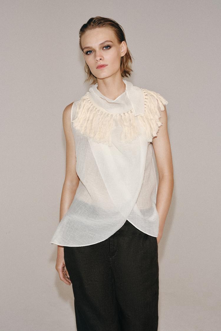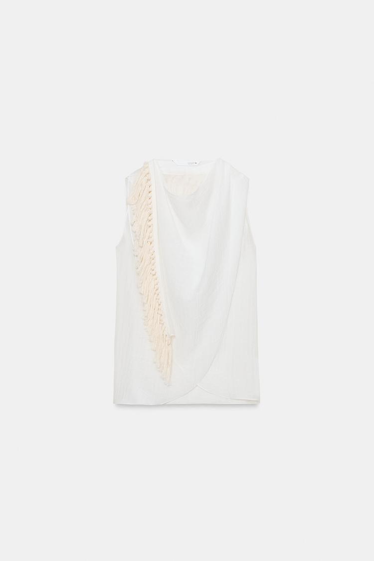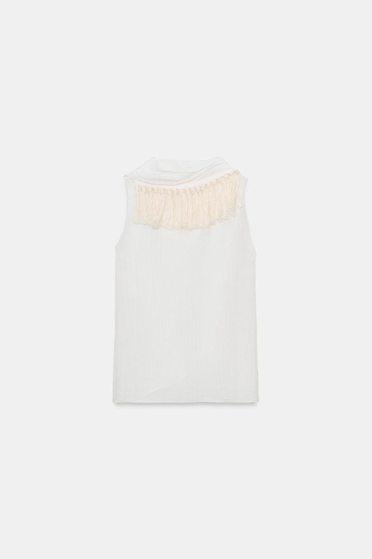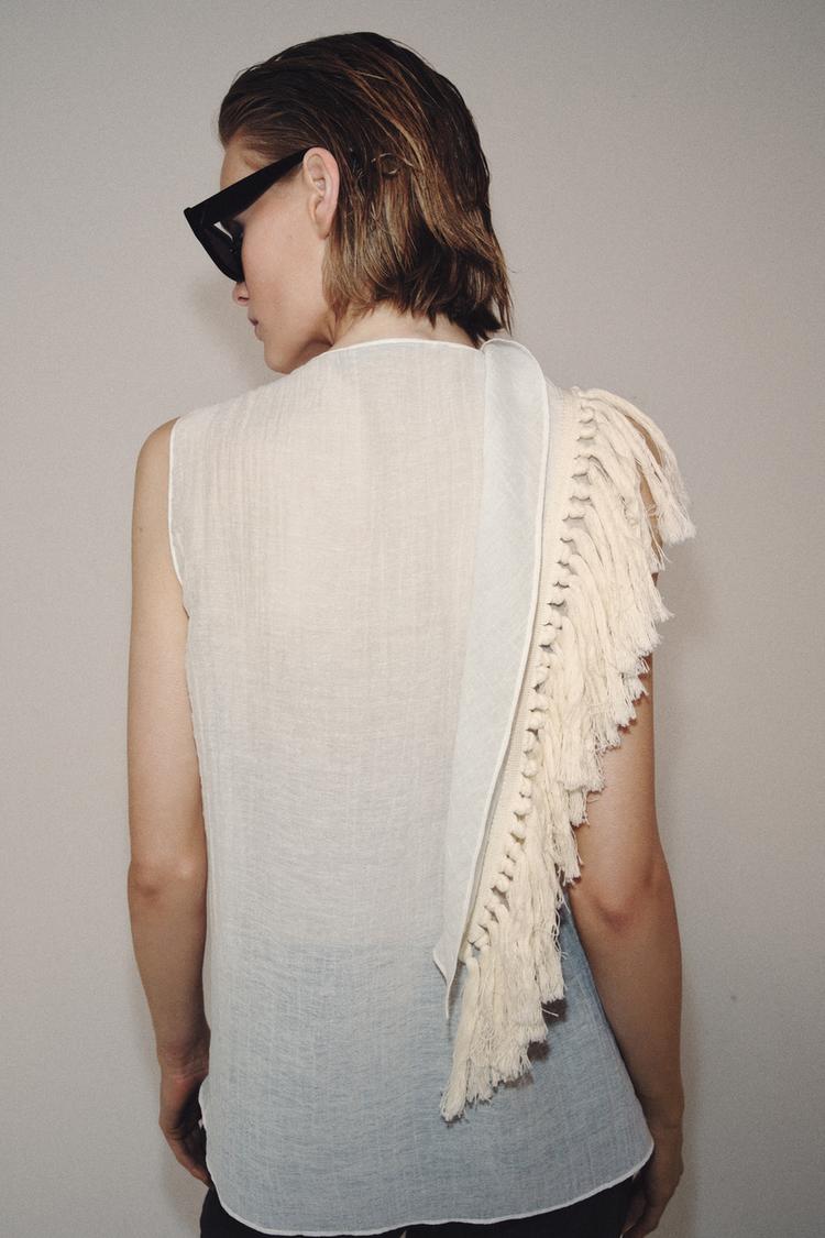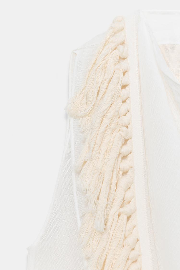 ZARA ТОП С БАХРОМОЙ — ZW COLLECTION, ЖЕЛТОВАТО-БЕЛЫЙ