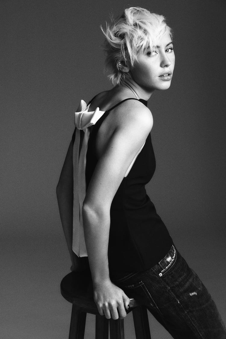 Топ с вырезом «лодочка» и тонкими бретелями. Контрастный бант сзади, подкладка. Потайная застежка-молния сбоку.