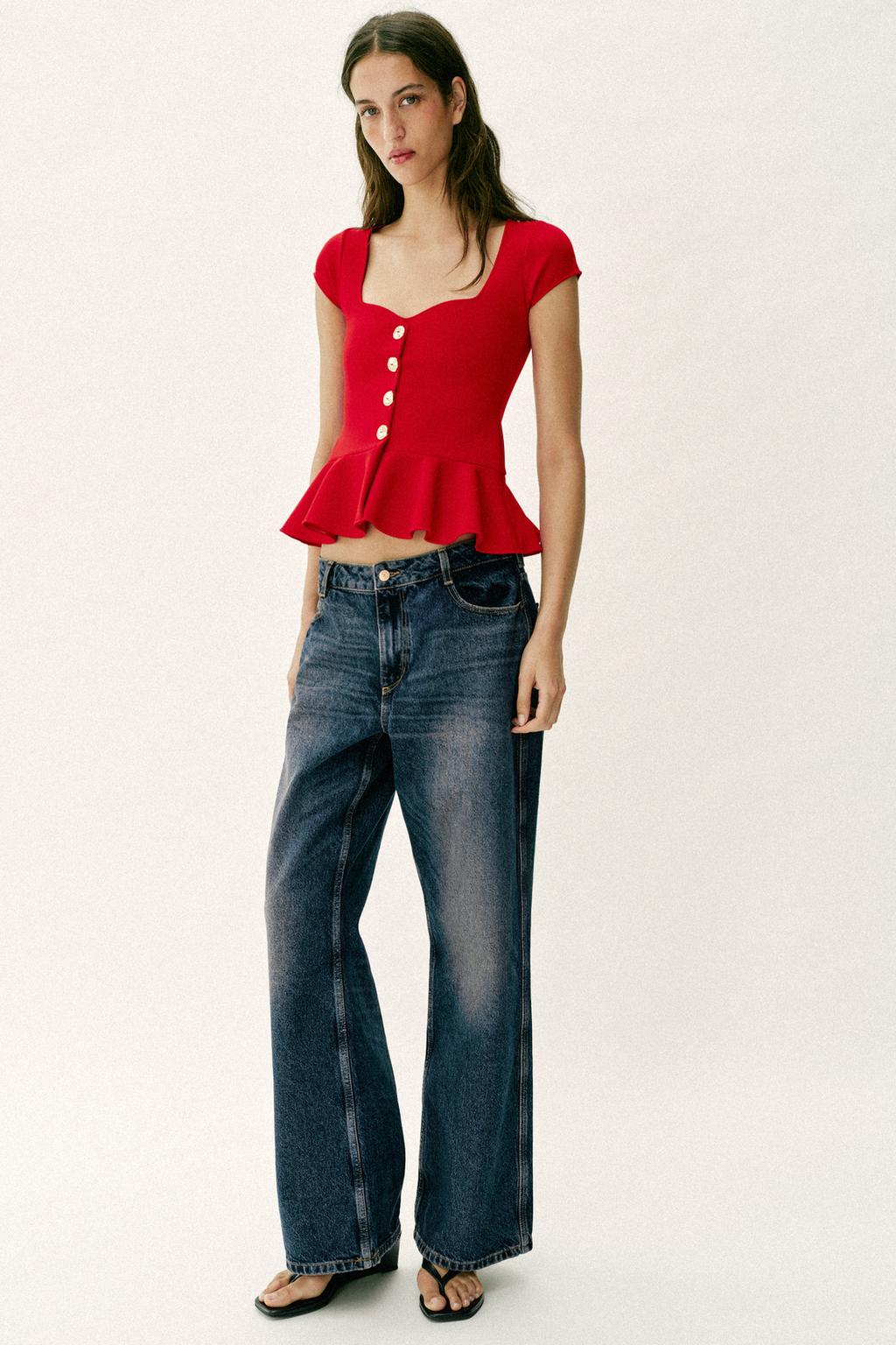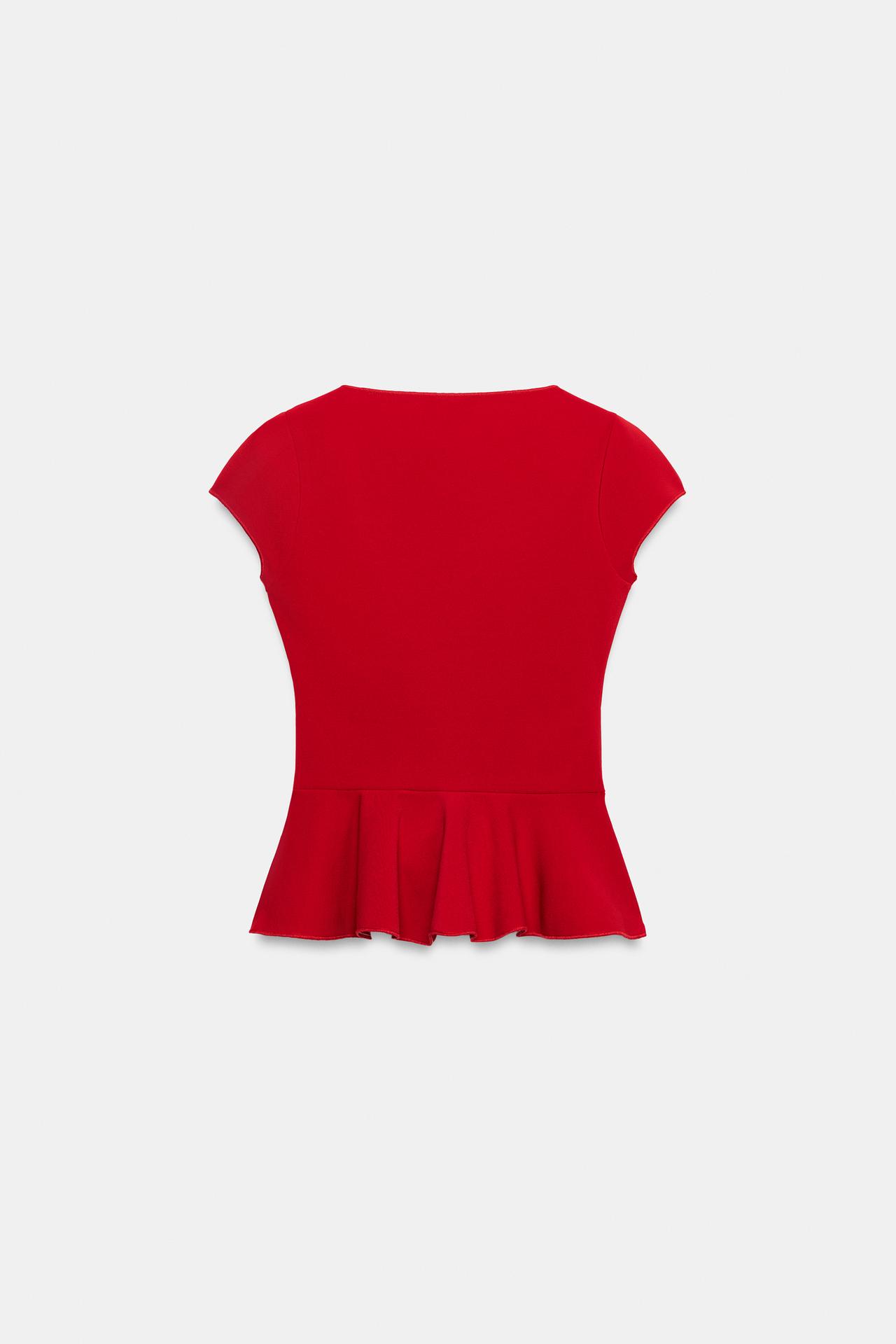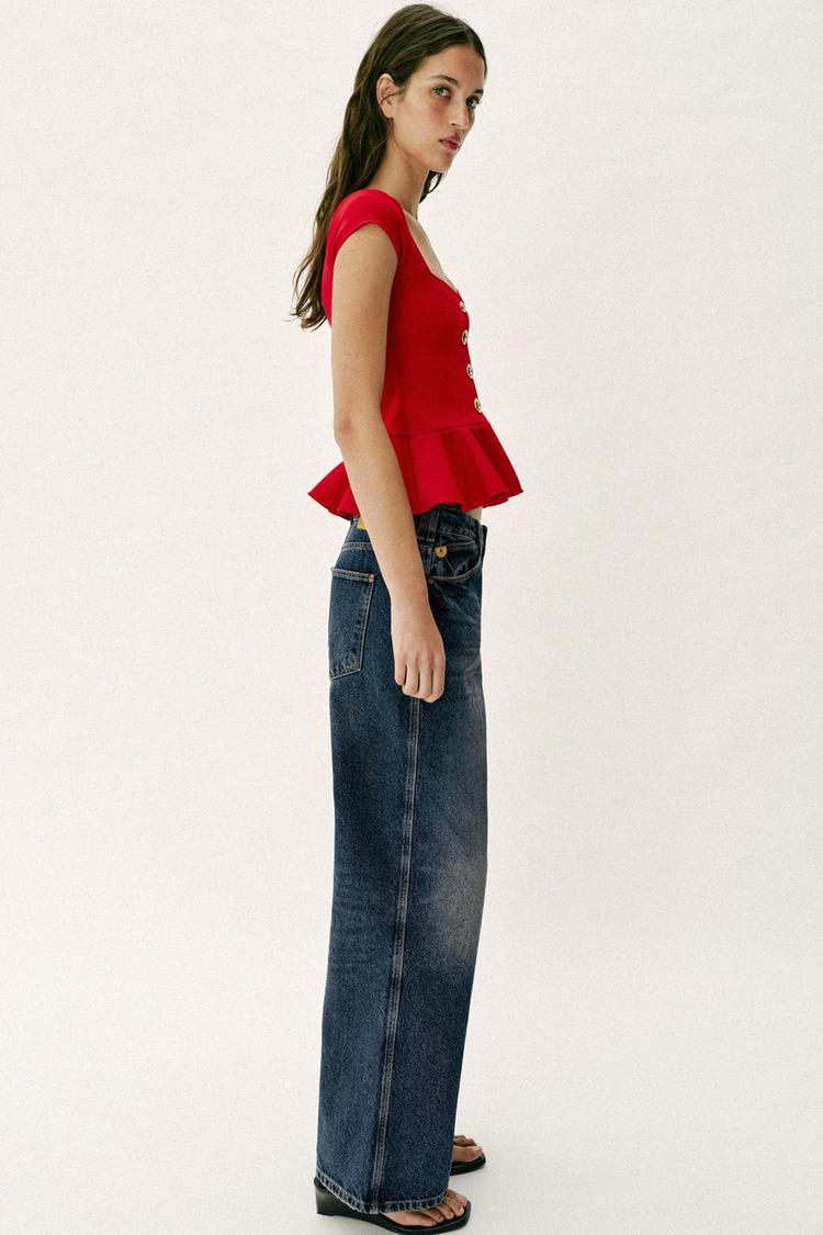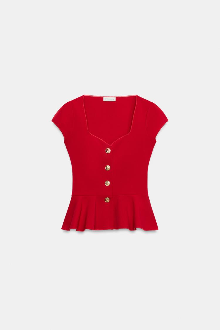 ZARA ТОП С БАСКОЙ И ПУГОВИЦАМИ, КРАСНЫЙ