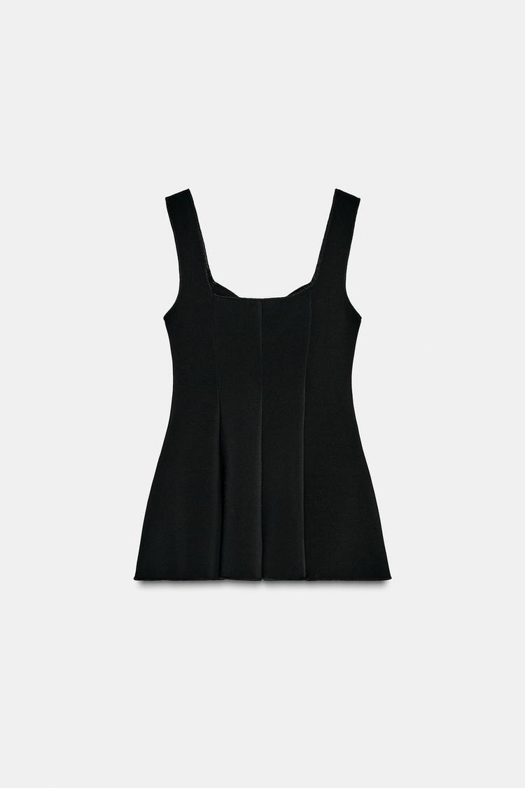 ZARA ТОП С БАСКОЙ ИЗ ЭЛАСТИЧНОЙ ТКАНИ, ЧЕРНЫЙ