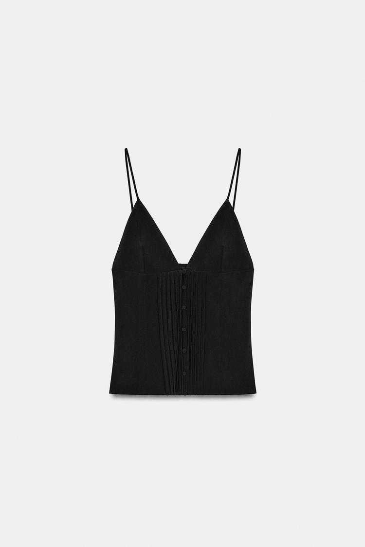 ZARA ТОП С БРЕТЕЛЯМИ И СКЛАДКАМИ, ЧЕРНЫЙ