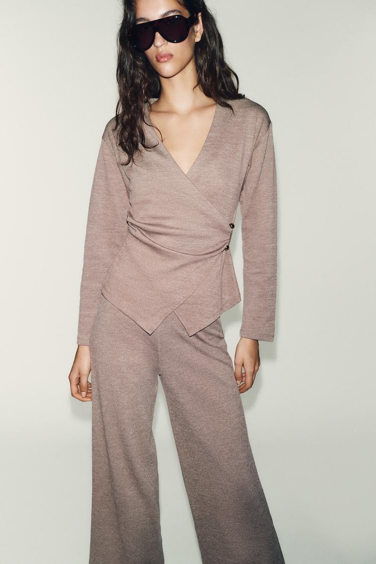 ZARA ТОП С БРОШЬЮ СБОКУ, СВЕТЛО-КОРИЧНЕВЫЙ