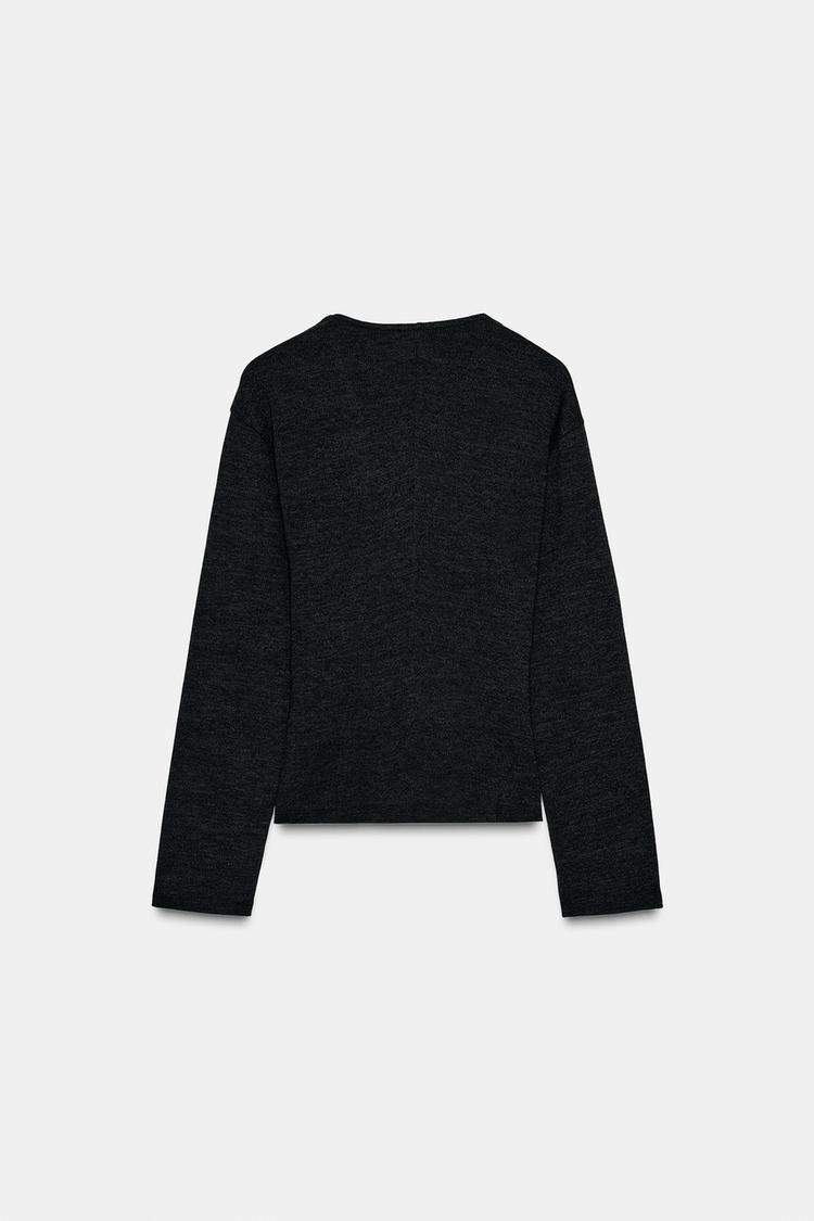 ZARA ТОП С БРОШЬЮ СБОКУ, ТЕМНЫЙ АНТРАЦИТ