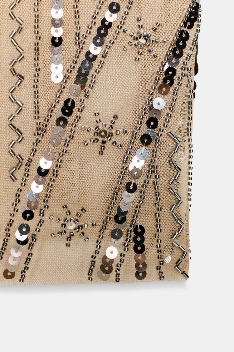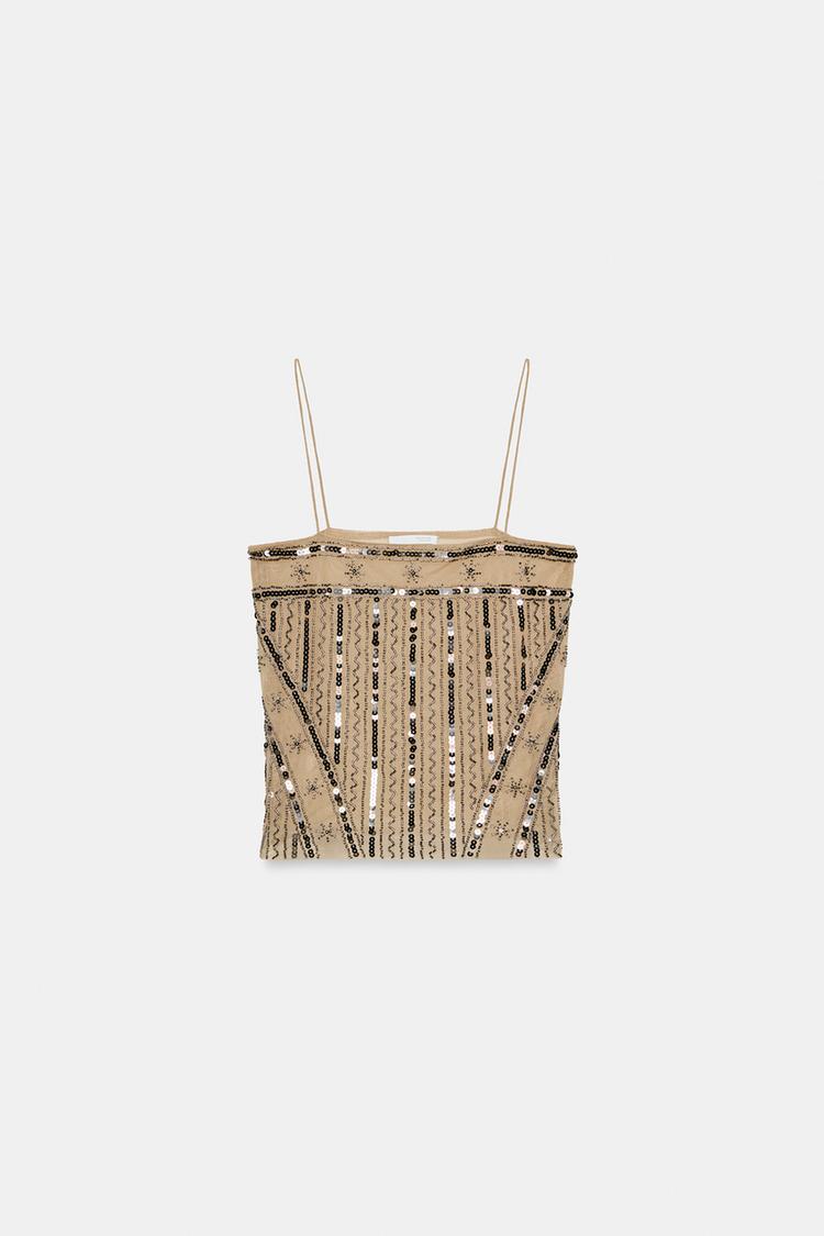 ZARA ТОП С БУСИНАМИ И ПАЙЕТКАМИ, ЗОЛОТИСТЫЙ