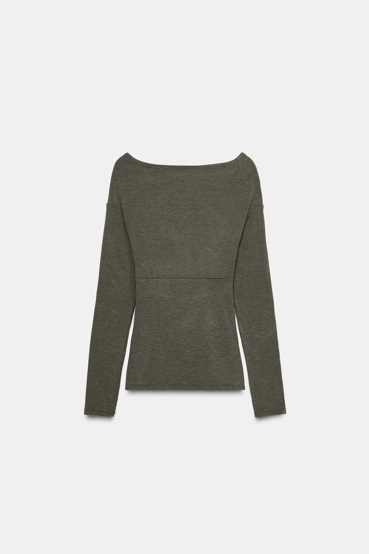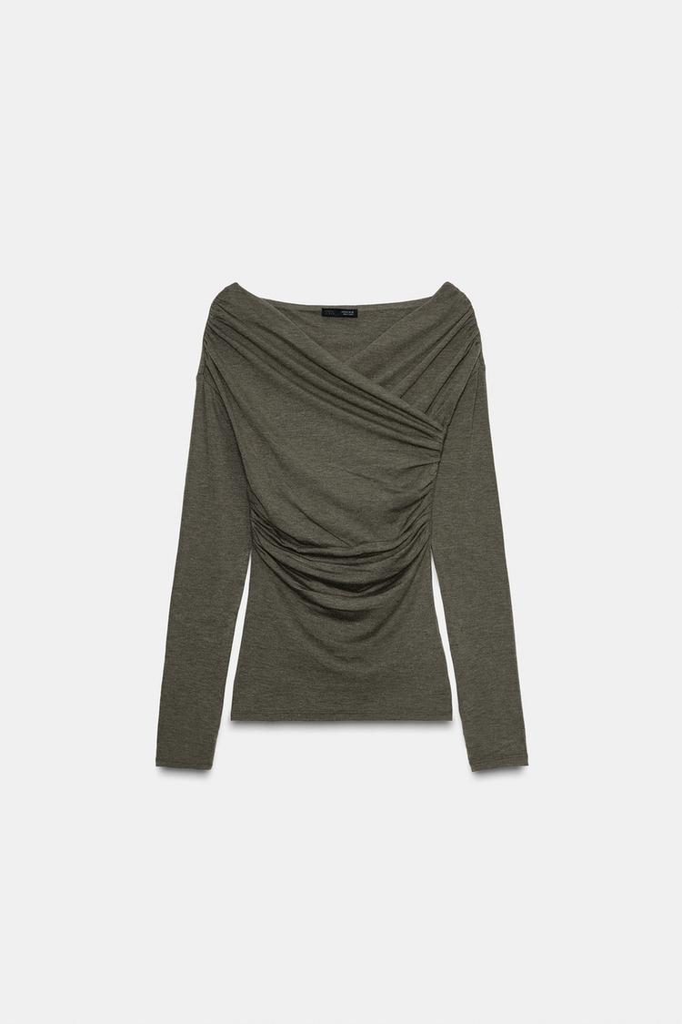 ZARA ТОП С ДРАПИРОВКОЙ И ПЕРЕКРЕСТНЫМ ВЫРЕЗОМ, ЗЕЛЕНЫЙ МЕЛАНЖ