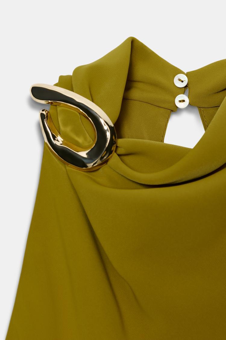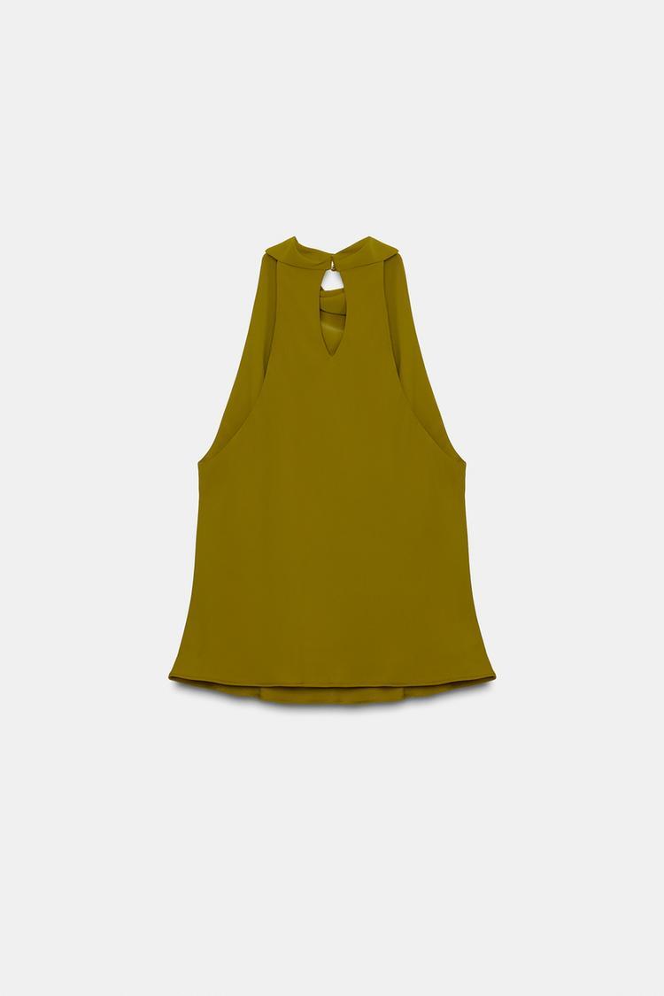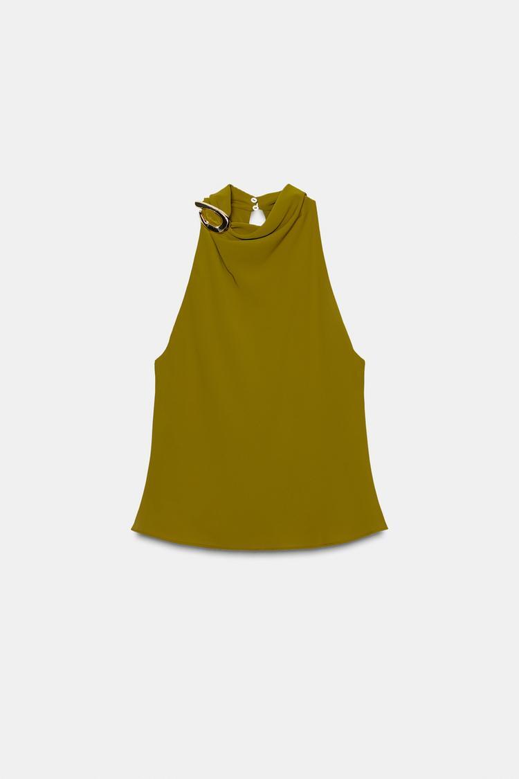 ZARA ТОП С ГОРЛОВИНОЙ ХАЛТЕР И ФУРНИТУРОЙ, ОЛИВКОВЫЙ