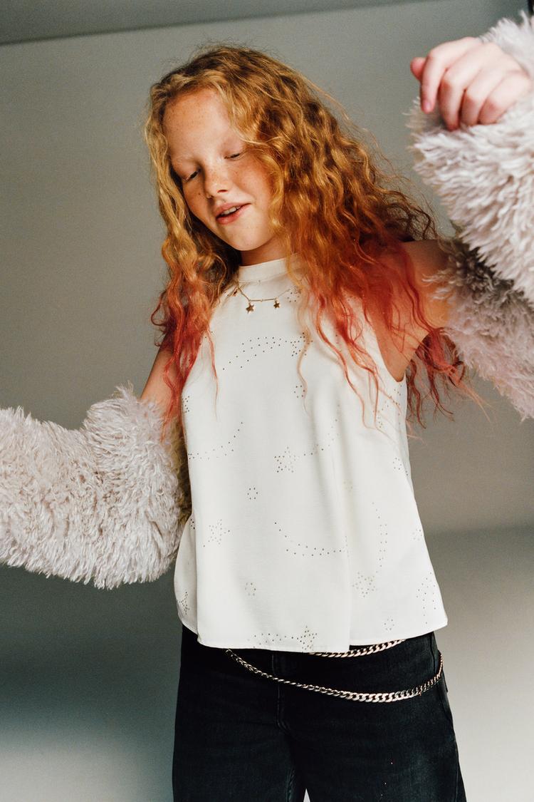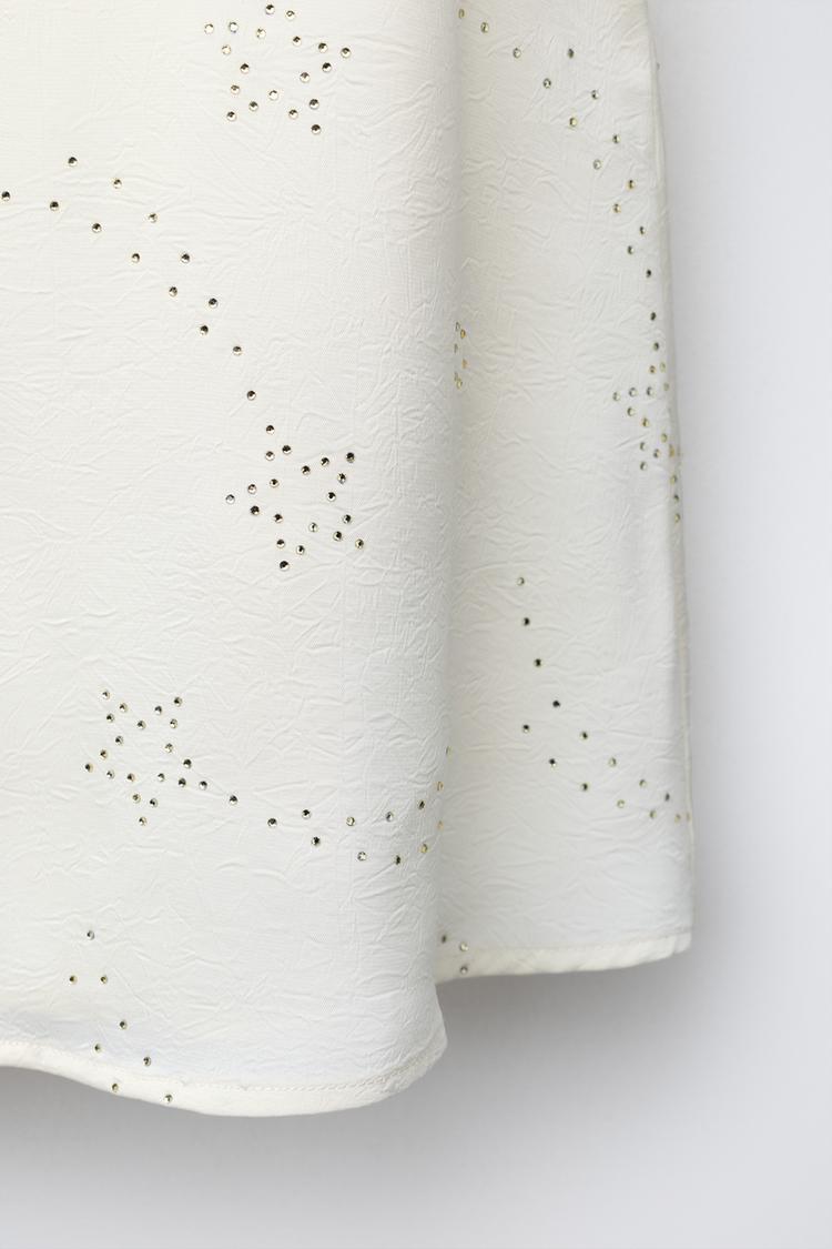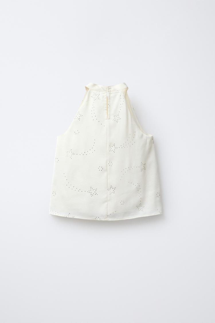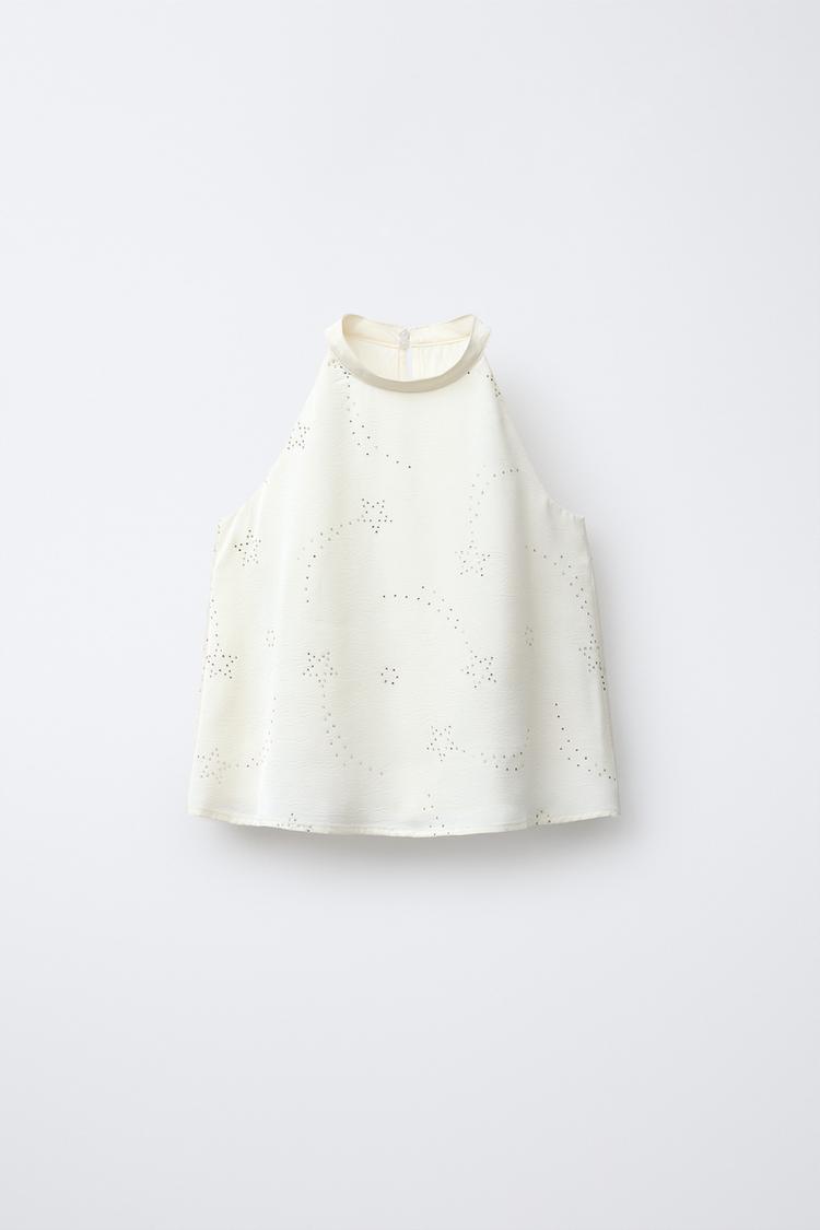 ZARA ТОП С ГОРЛОВИНОЙ ХАЛТЕР И СТРАЗАМИ, ЖЕЛТОВАТО-БЕЛЫЙ