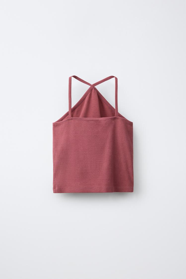 ZARA ТОП С ГОРЛОВИНОЙ ХАЛТЕР И ЗАКЛЕПКАМИ, ГРАНАТОВЫЙ
