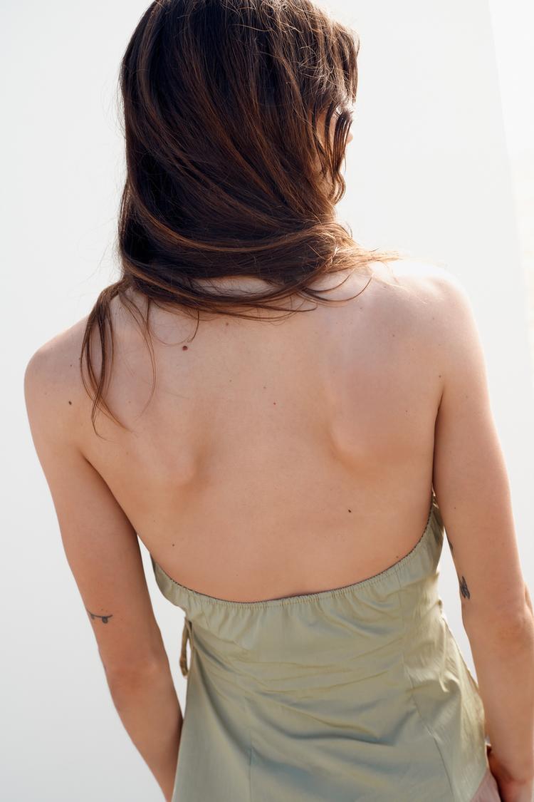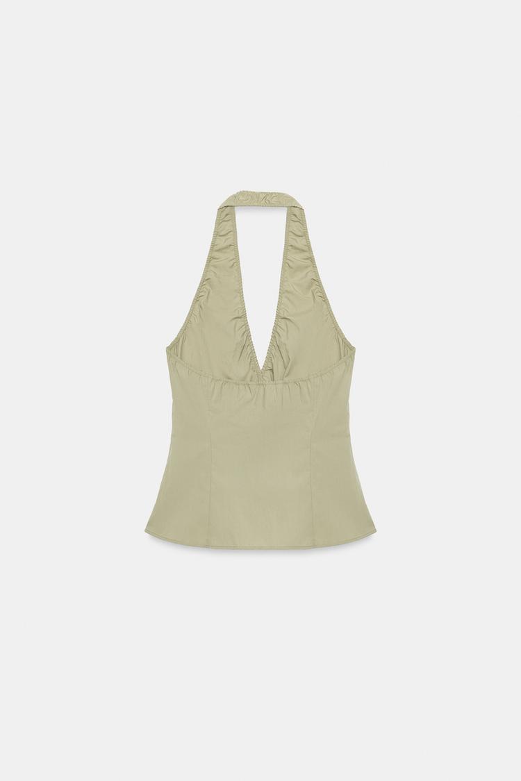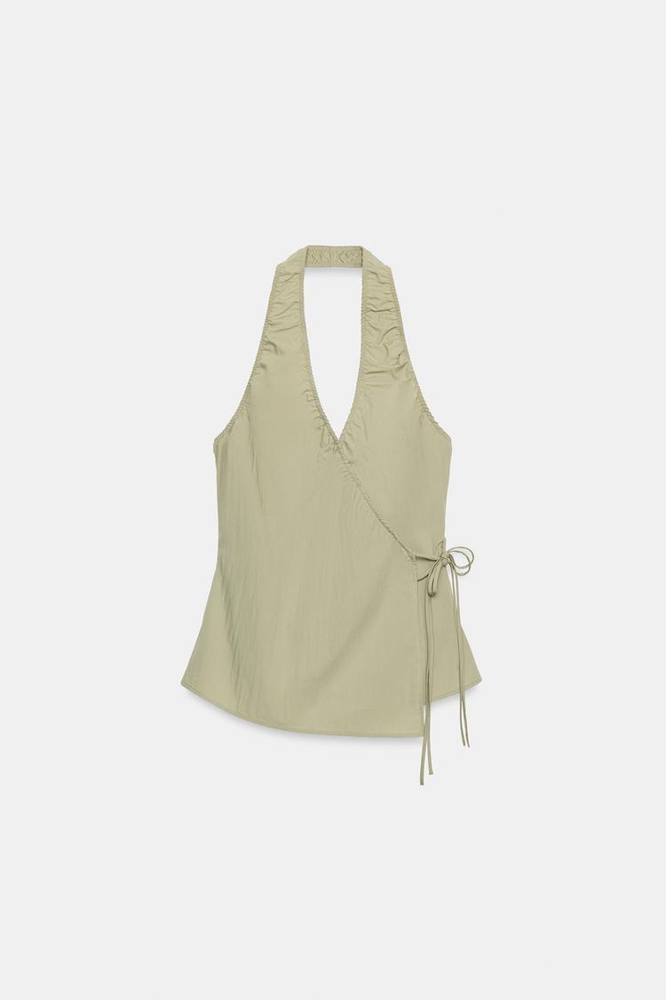 ZARA ТОП С ГОРЛОВИНОЙ ХАЛТЕР И ЗАПÁХОМ, СВЕТЛЫЙ ХАКИ