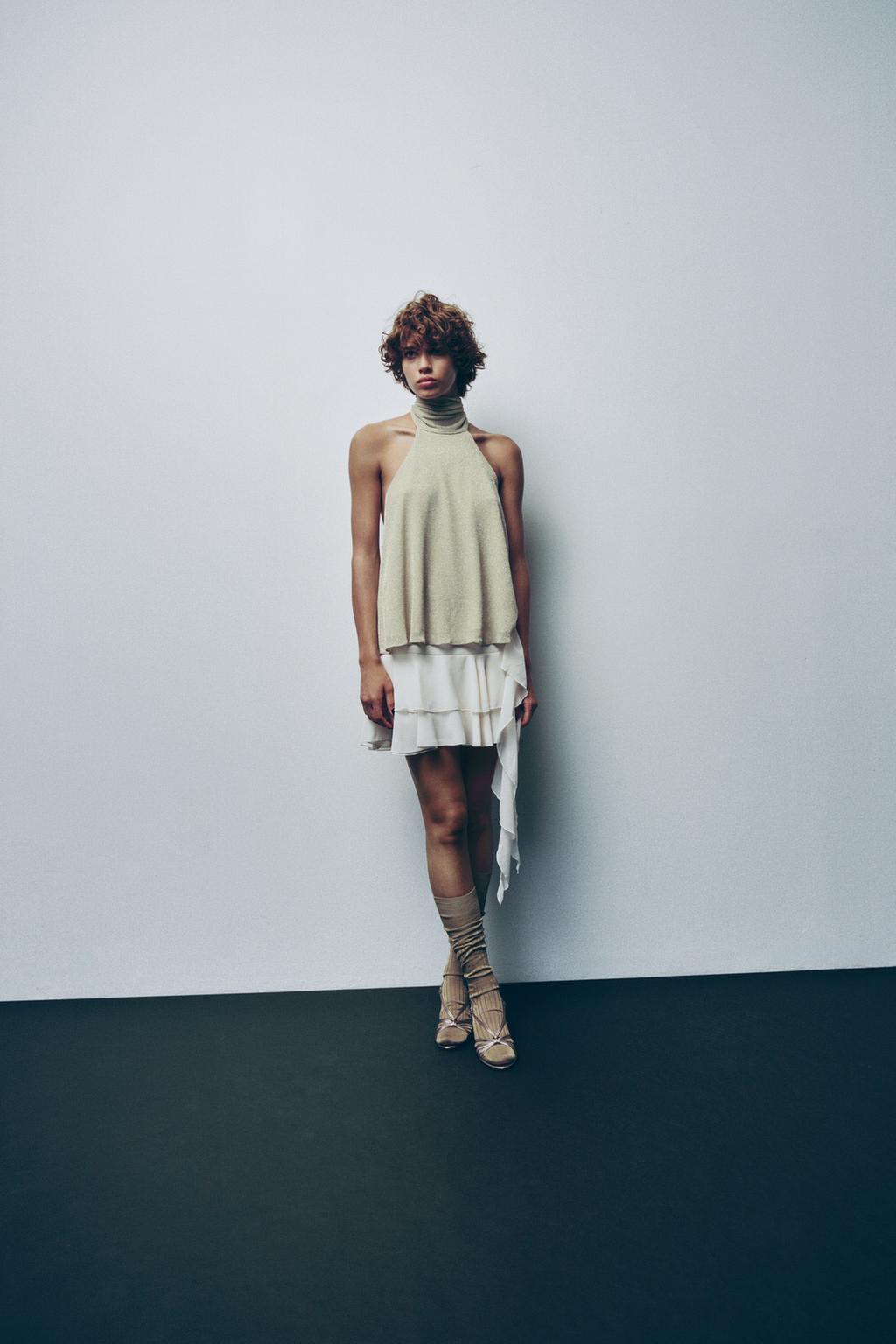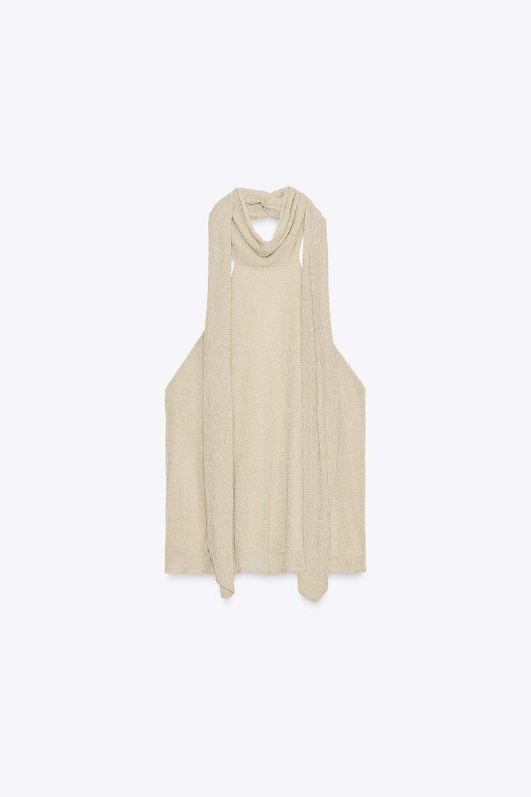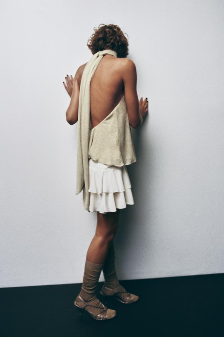 ZARA ТОП С ГОРЛОВИНОЙ ХАЛТЕР ИЗ МЕТАЛЛИЗИРОВАННОЙ НИТИ, ЗОЛОТИСТЫЙ