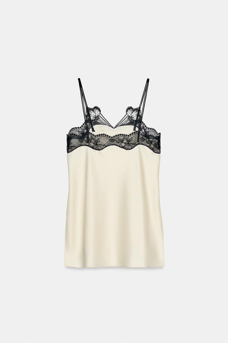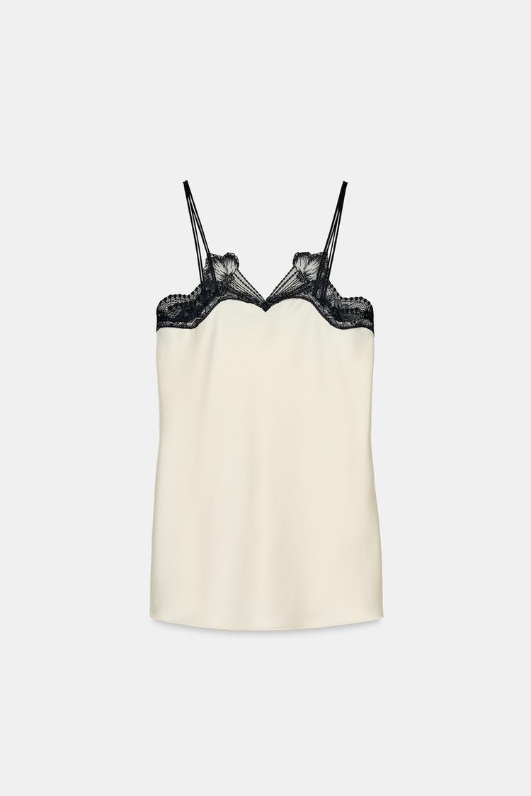 ZARA ТОП С КОНТРАСТНЫМ КРУЖЕВОМ — ZW COLLECTION, ЭКРЮ