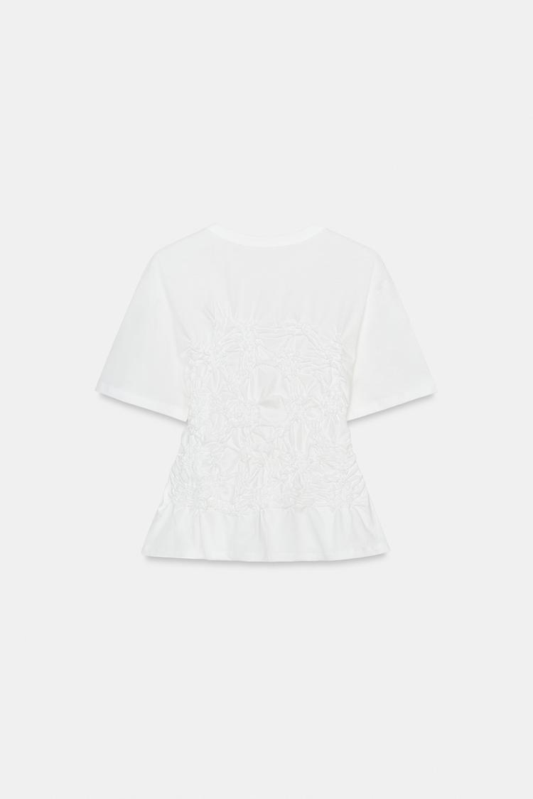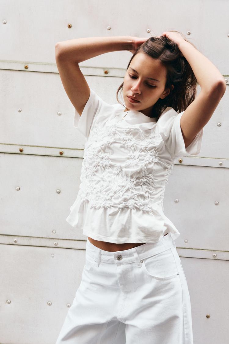 ZARA ТОП С КОРОТКИМИ РУКАВАМИ И СБОРКАМИ, БЕЛЫЙ