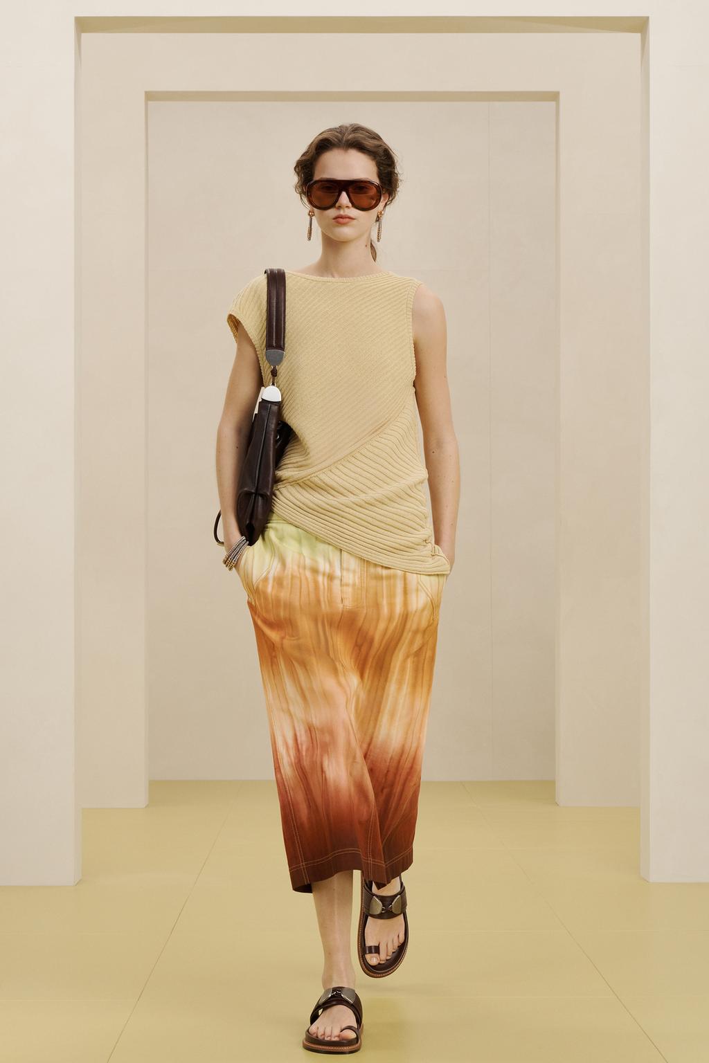 Топ из ткани с 20%-ной льняной добавкой, с круглым вырезом горловины, без рукавов и с асимметричным краем. С деталями из рубчатой ткани.