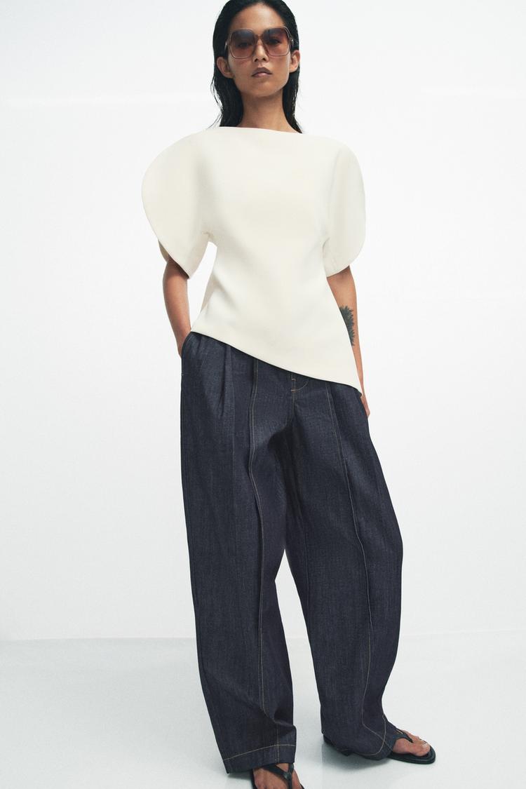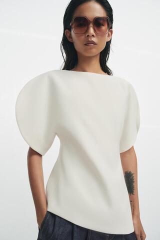 ZARA ТОП С ОБЪЕМНЫМИ РУКАВАМИ — ZW COLLECTION, ЦВЕТ СЛОНОВОЙ КОСТИ