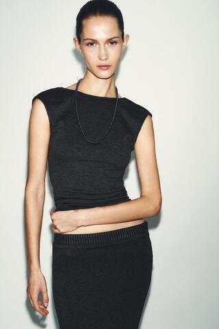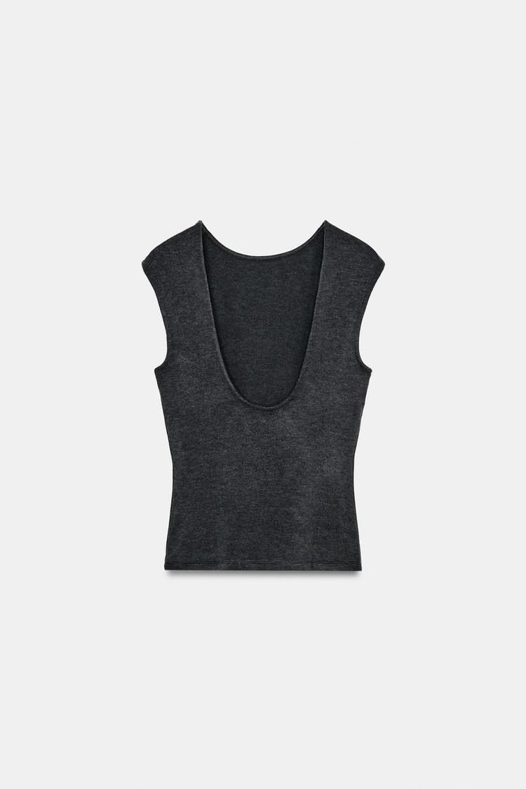 ZARA ТОП С ОТКРЫТОЙ СПИНОЙ, АНТРАЦИТОВО-СЕРЫЙ