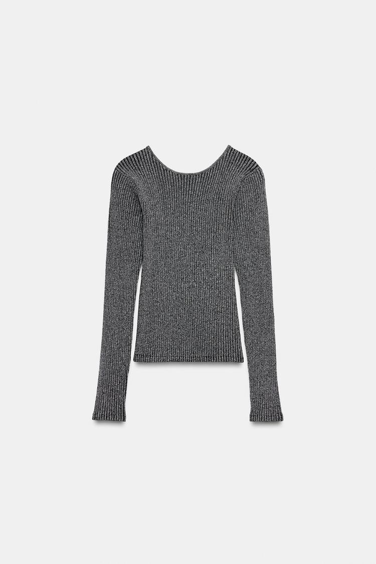 ZARA ТОП С ОТКРЫТОЙ СПИНОЙ И МЕТАЛЛИЗИРОВАННОЙ НИТЬЮ, СЕРЕБРИСТЫЙ