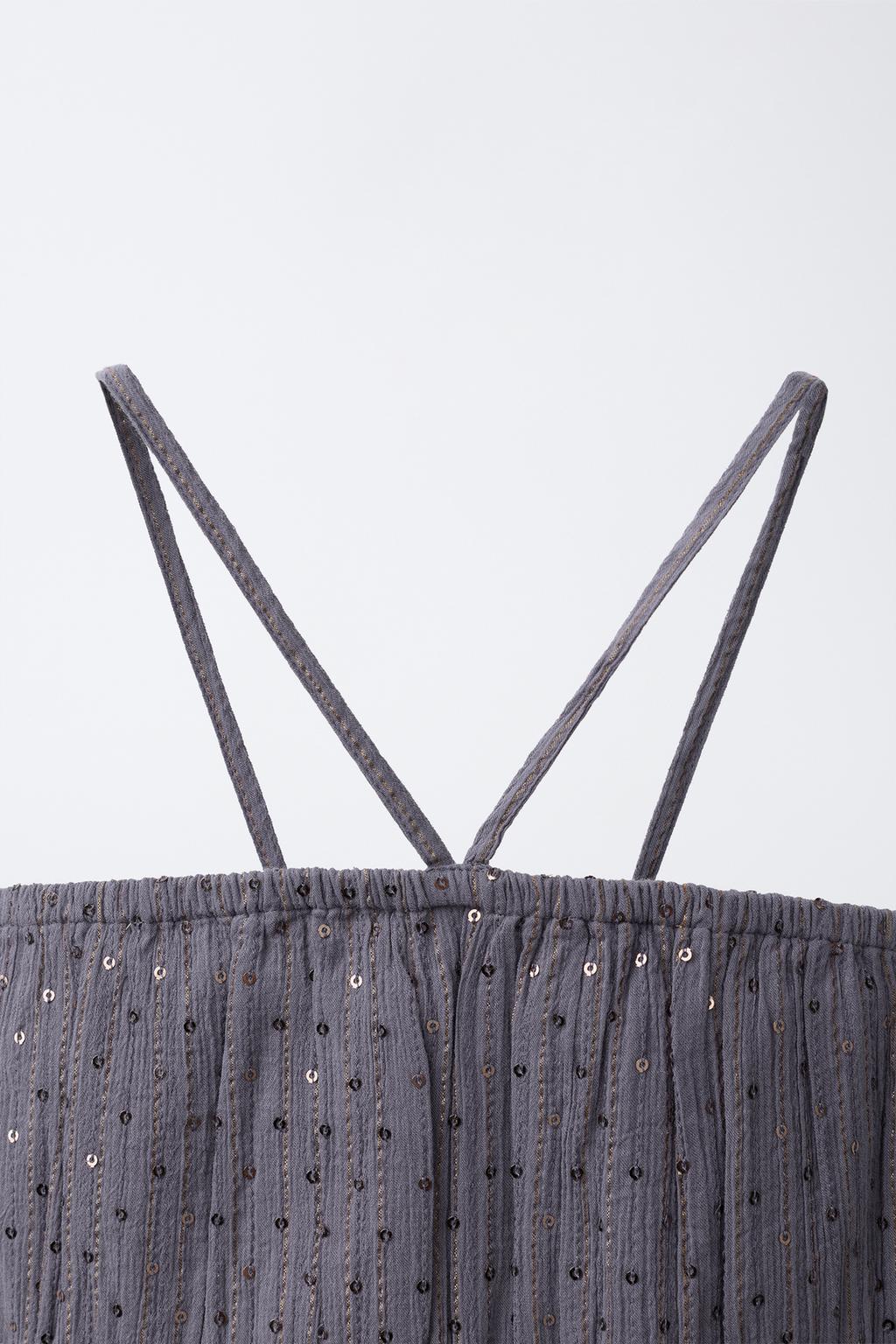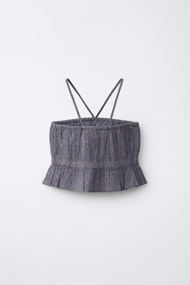ZARA ТОП С ПАЙЕТКАМИ, АНТРАЦИТОВО-СЕРЫЙ