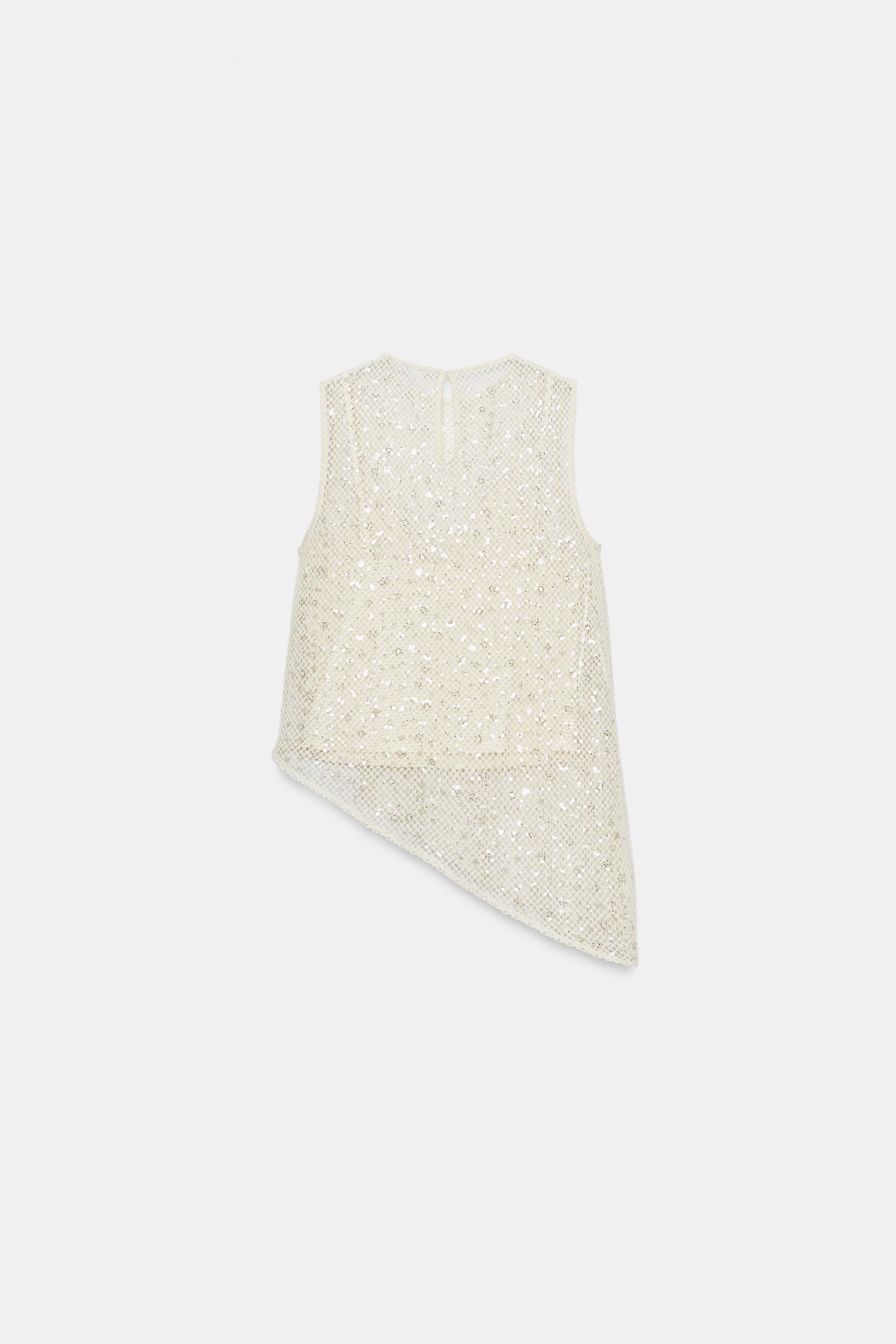 ZARA ТОП С ПАЙЕТКАМИ, ЭКРЮ