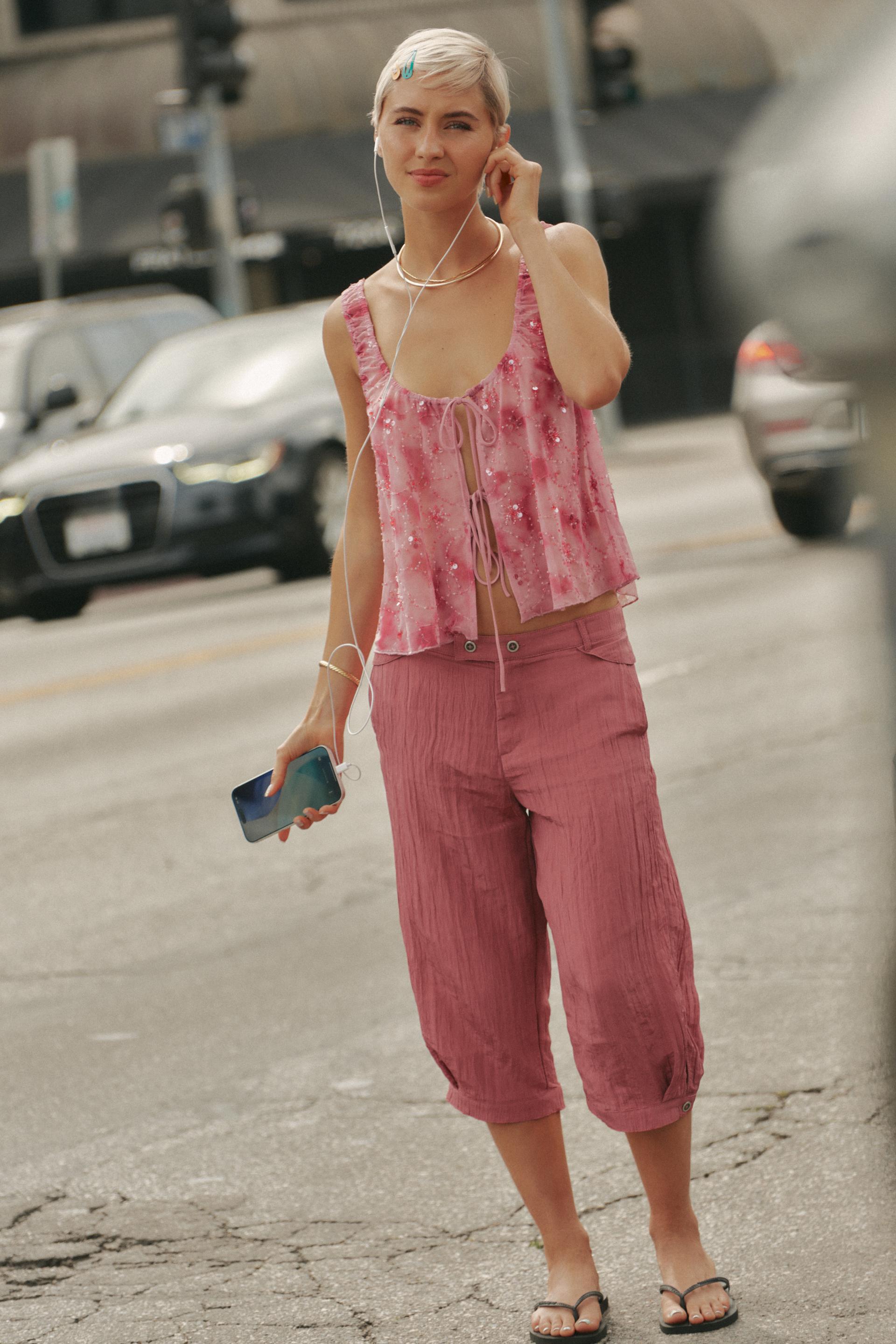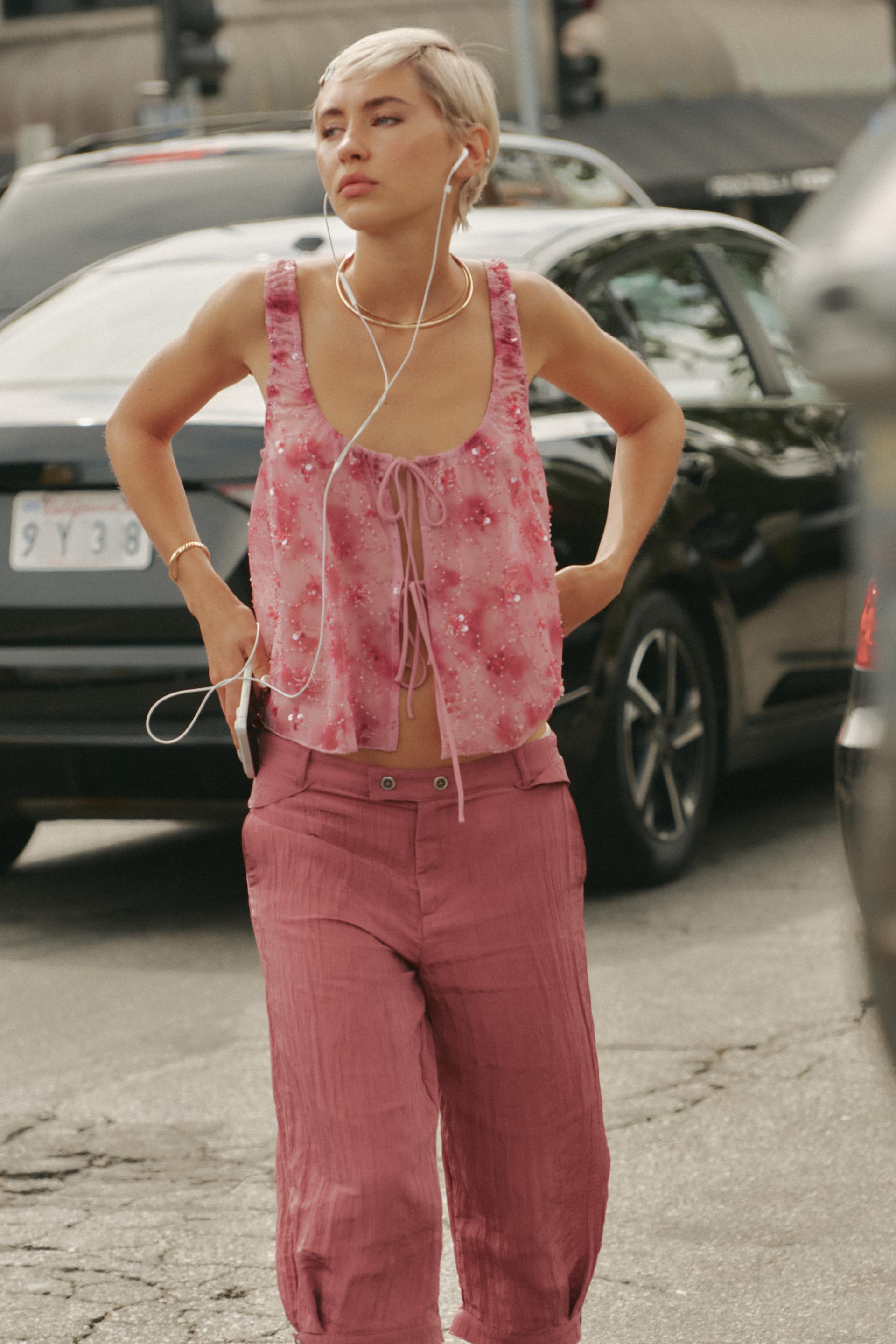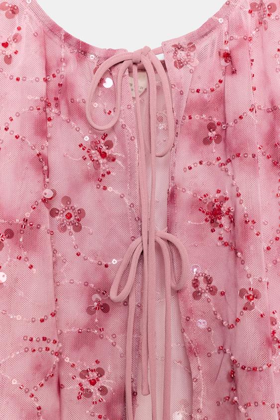 ZARA ТОП С ПАЙЕТКАМИ И БАНТАМИ, ОТТЕНКИ РОЗОВОГО