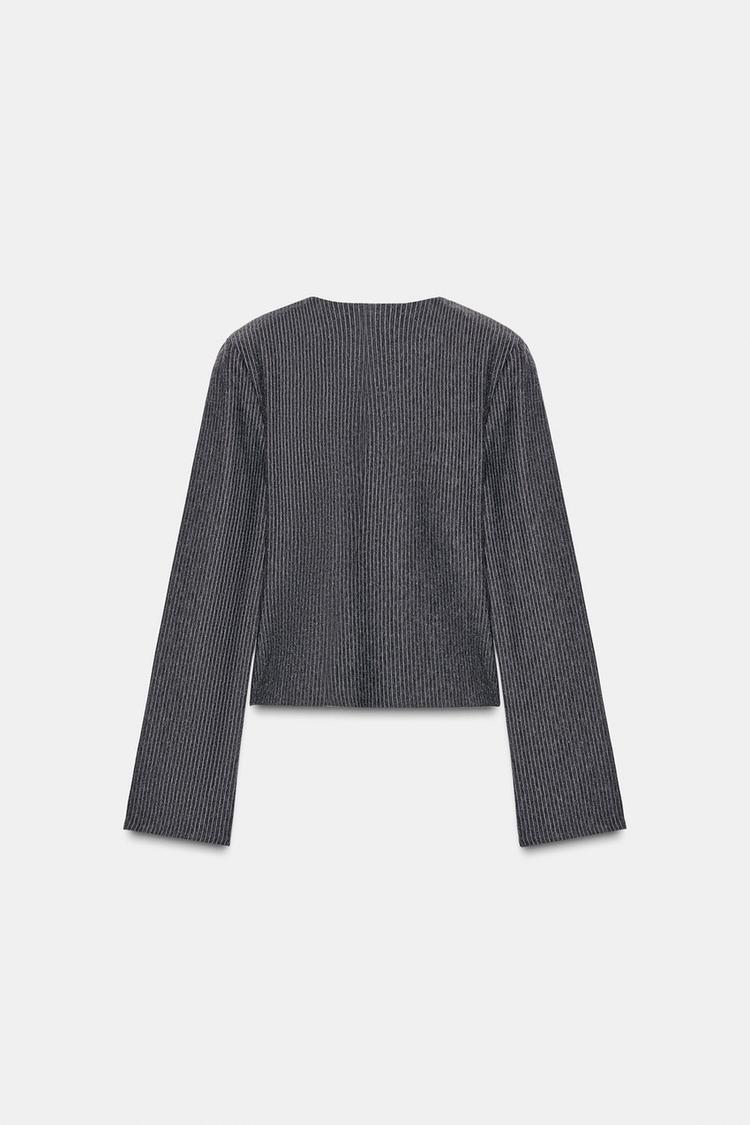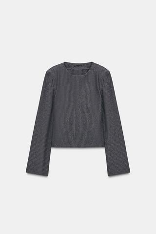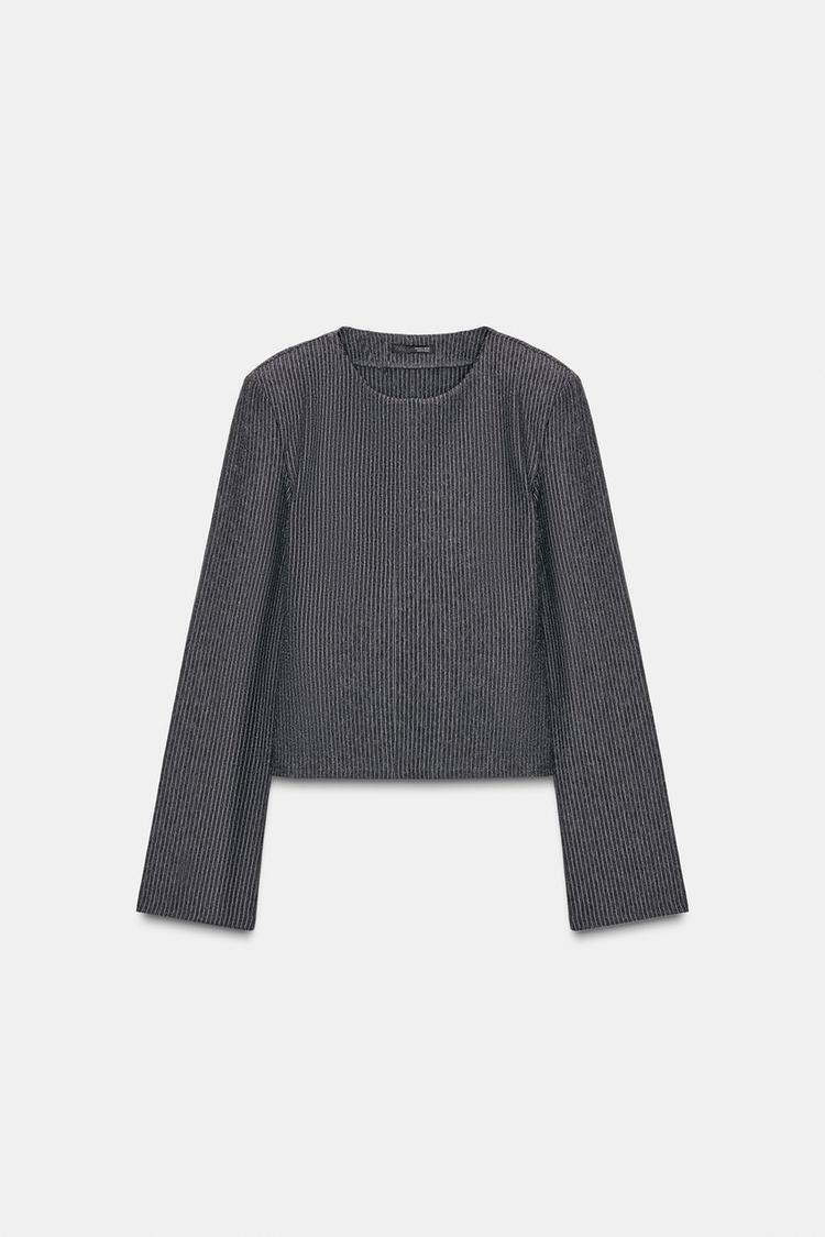 Топ с круглым вырезом, длинными рукавами и подплечниками.