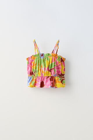 ZARA ТОП С ПРИНТОМ И ВОЛАНОМ, РАЗНОЦВЕТНЫЙ