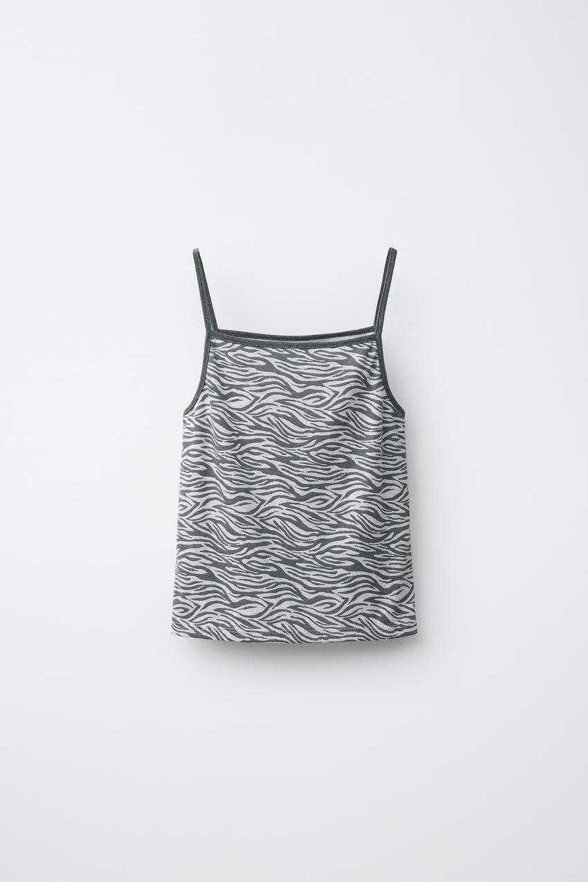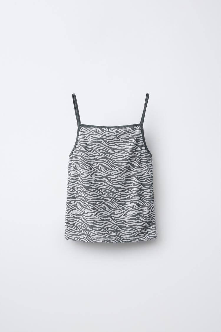 Топ с прямым вырезом и бретельками. Принт зебра.