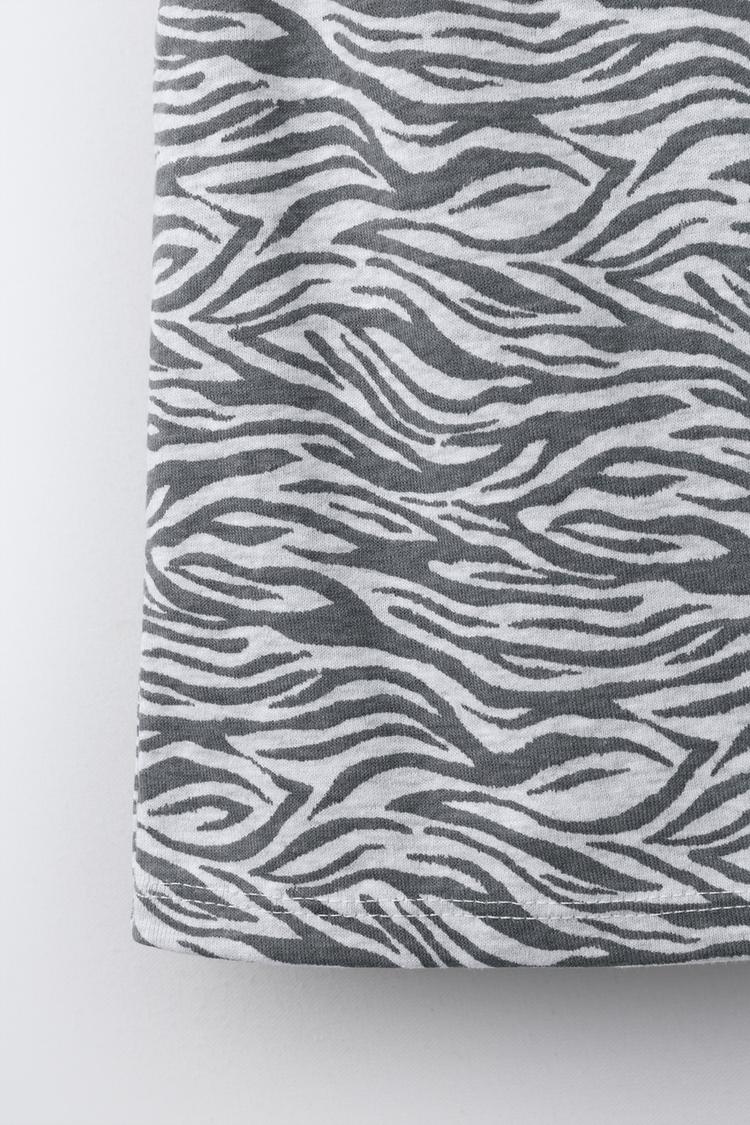 ZARA ТОП С ПРИНТОМ, СЕРЫЙ МЕЛАНЖ