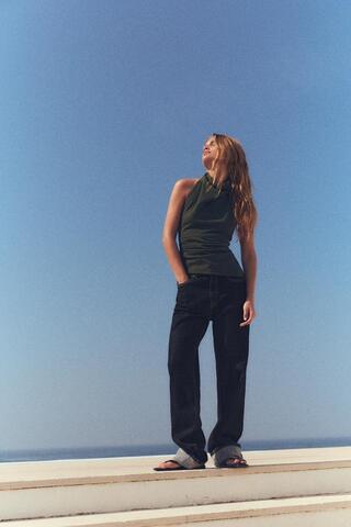 ZARA ТОП С ПРЯЖКОЙ СЗАДИ, ЗЕЛЕНЫЙ