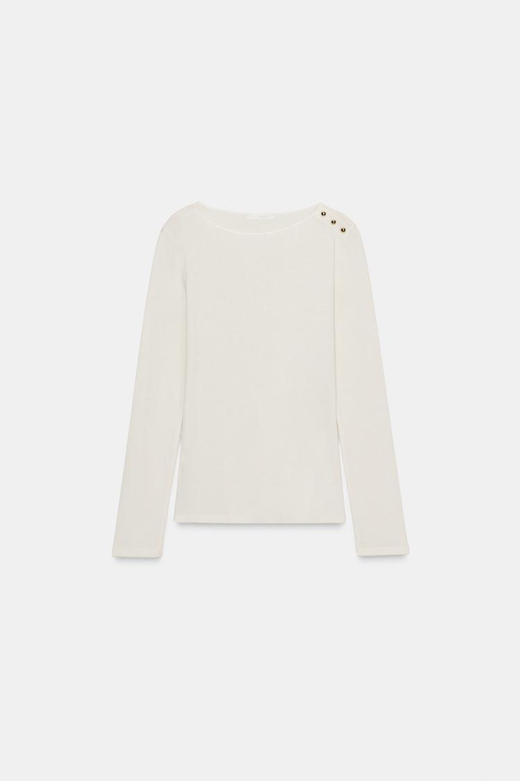 ZARA ТОП С ПУГОВИЦАМИ И ДЛИННЫМИ РУКАВАМИ, ЭКРЮ