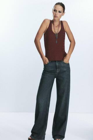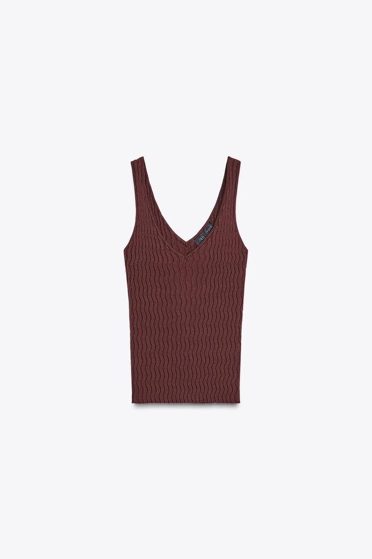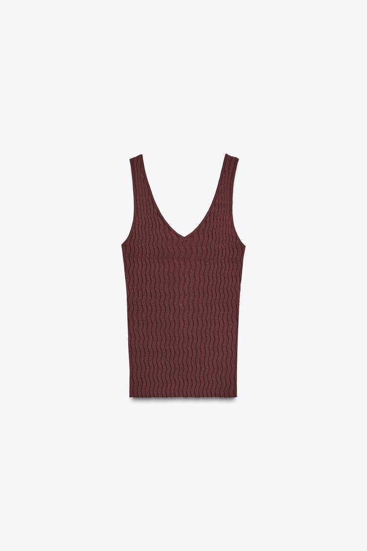 ZARA ТОП С РЕЛЬЕФНЫМ УЗОРОМ, БУРГУНДИ