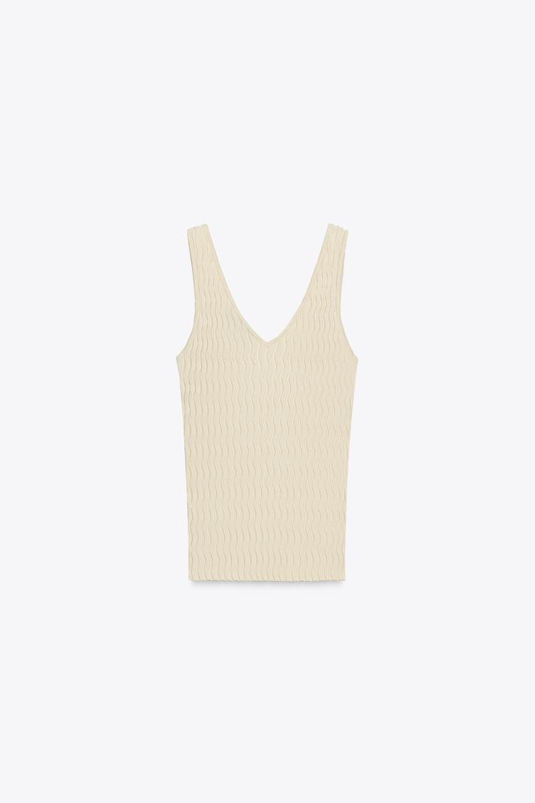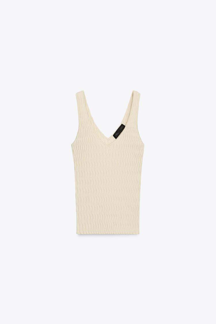 ZARA ТОП С РЕЛЬЕФНЫМ УЗОРОМ, КРЕМОВЫЙ