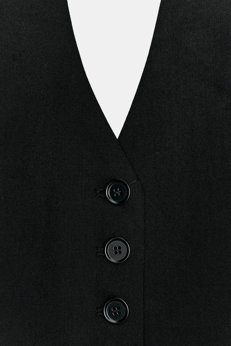 Жилет с воротником-стойкой и V-образным вырезом. С детализацией съемного галстука. Имеется внутренняя подкладка. Застежка-молния спереди.