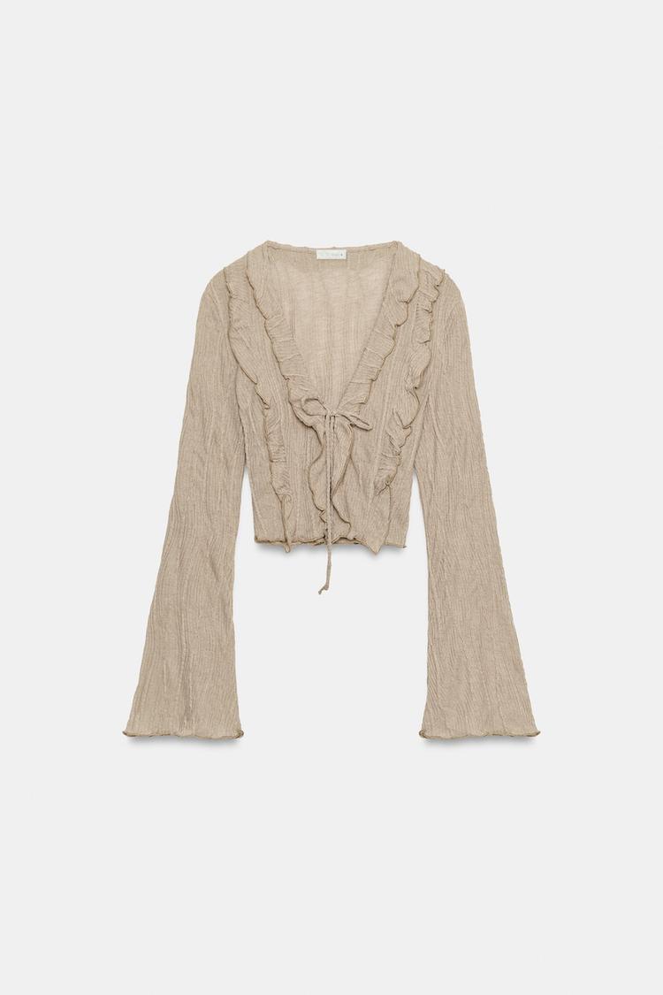 ZARA ТОП С ВОЛАНАМИ И ЗАВЯЗКАМИ, БЕЖЕВЫЙ