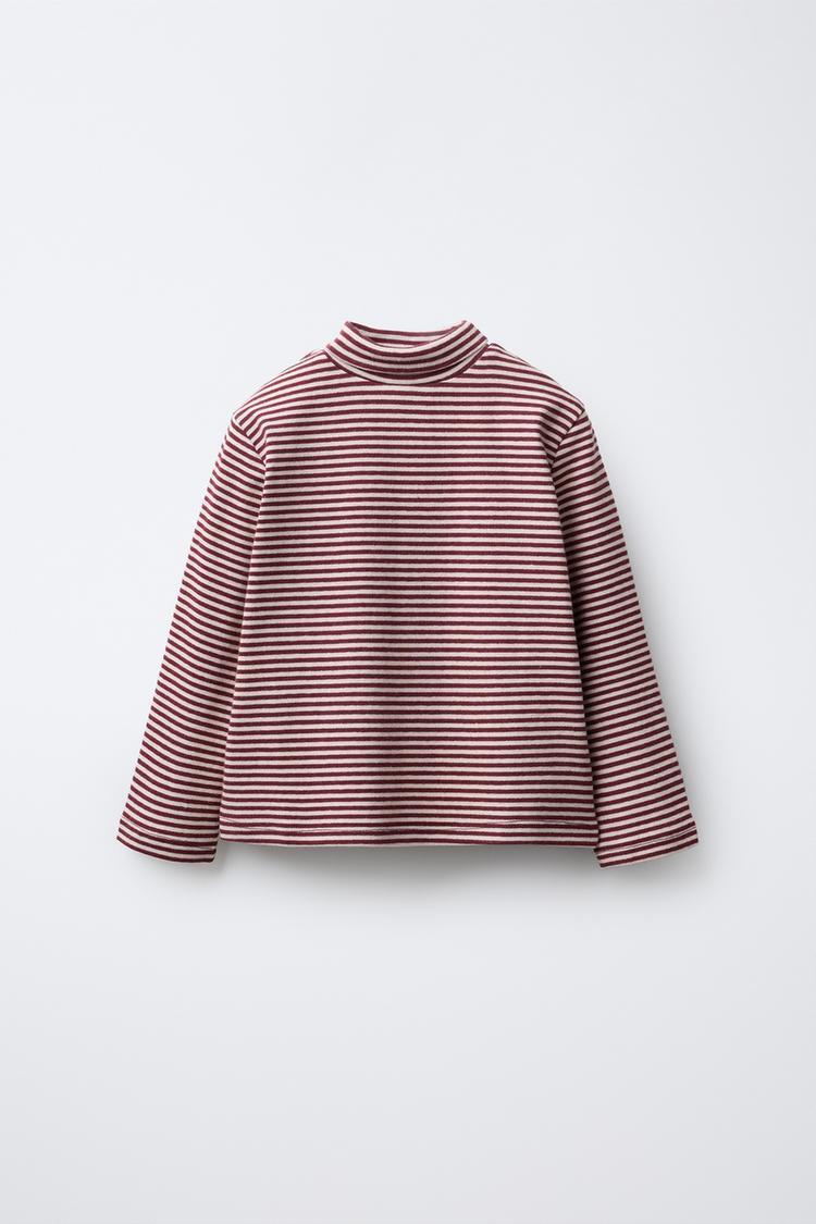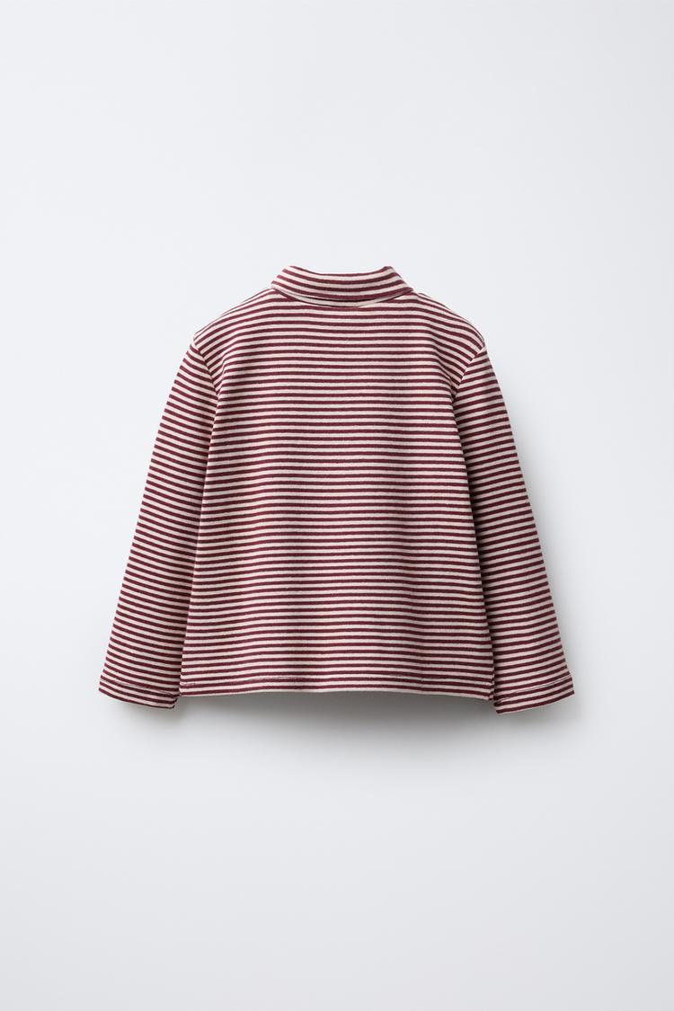 ZARA ТОП С ВОРОТНИКОМ-СТОЙКОЙ, КРАСНАЯ ПОЛОСКА