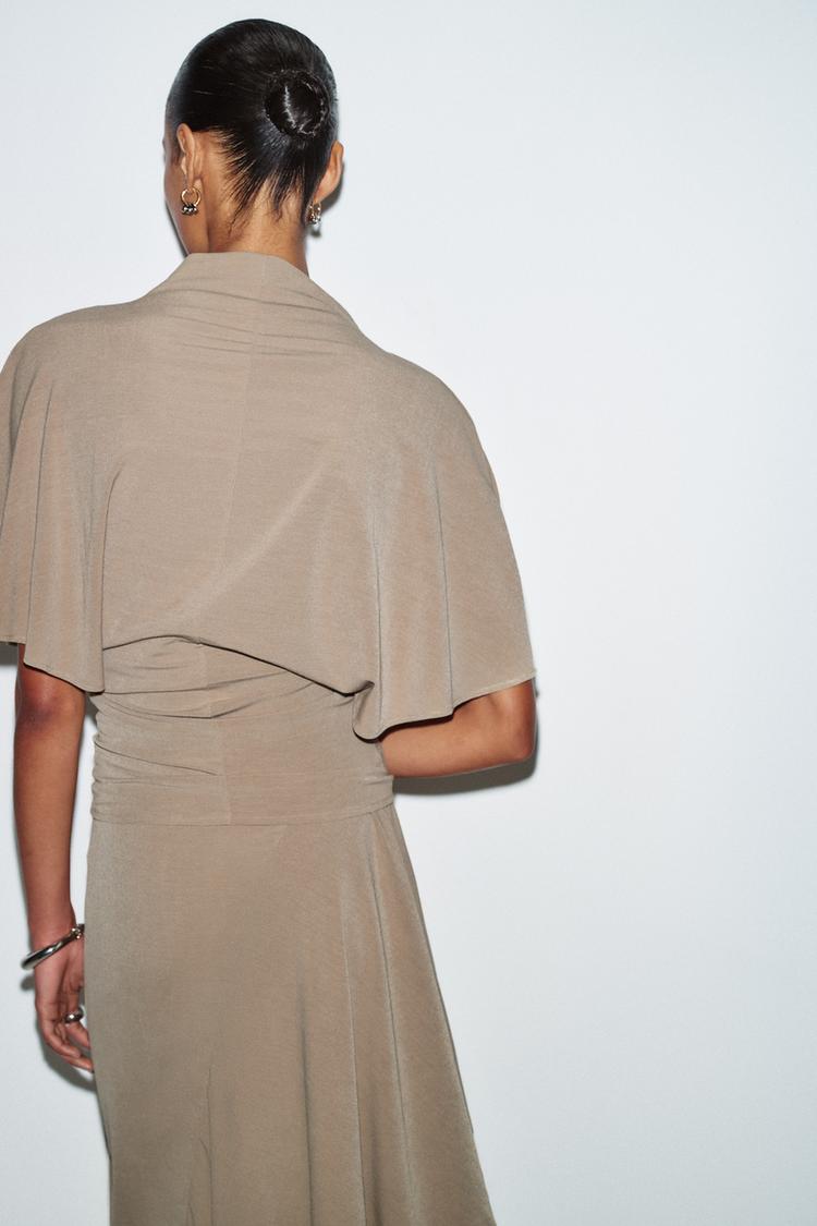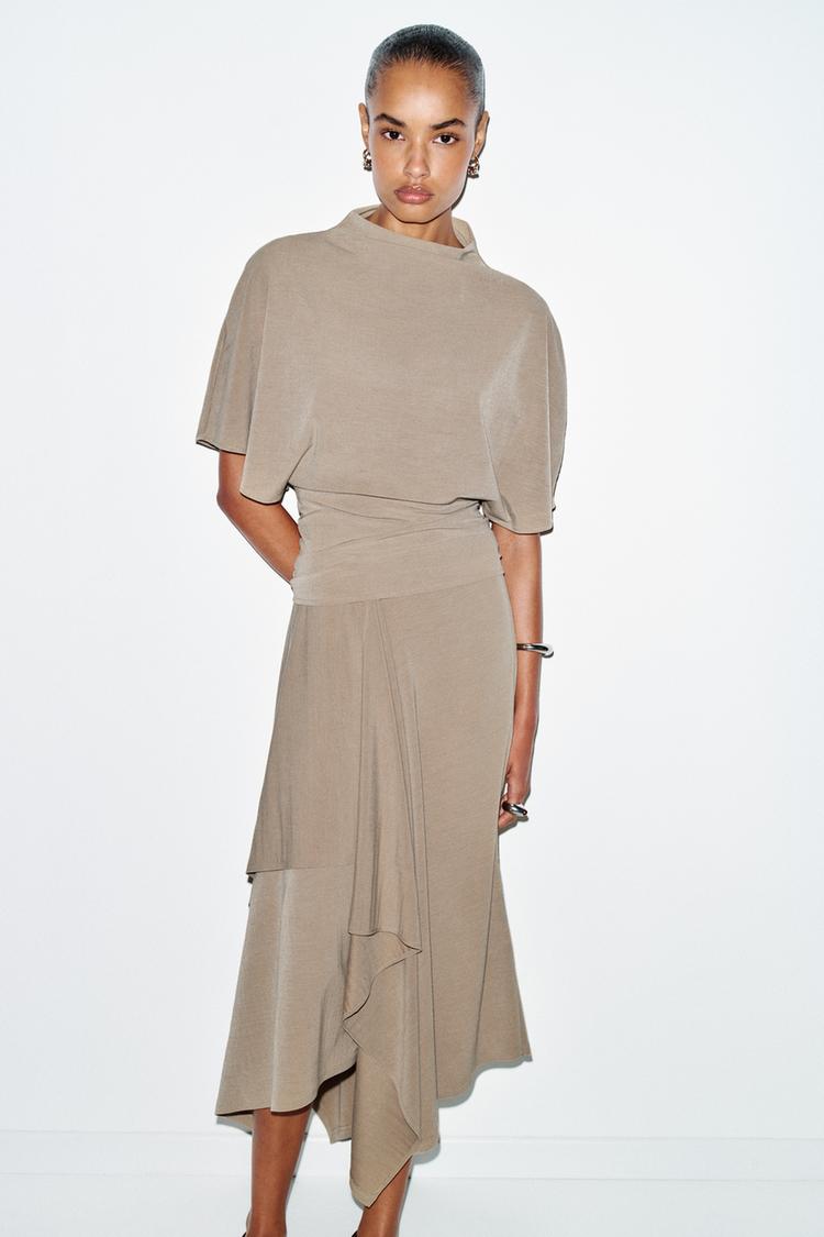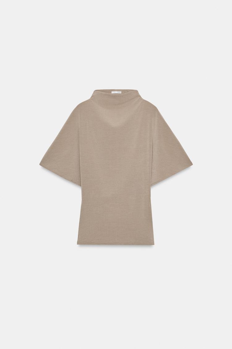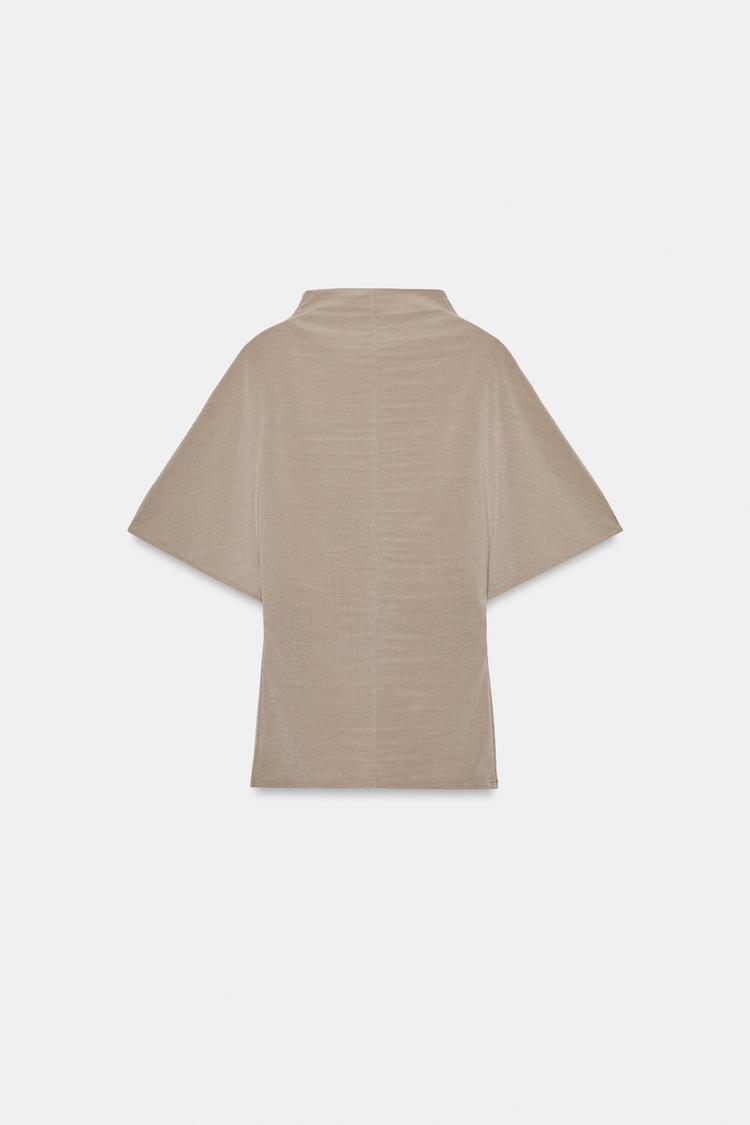 ZARA ТОП С ВОРОТНИКОМ-СТОЙКОЙ, ПЕСОЧНЫЙ