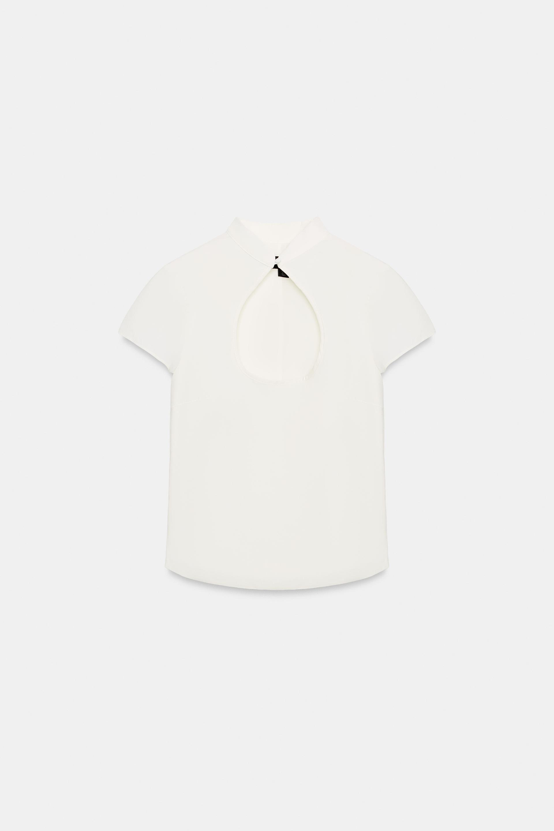 ZARA ТОП С ВОРОТНИКОМ-СТОЙКОЙ, ЖЕЛТОВАТО-БЕЛЫЙ