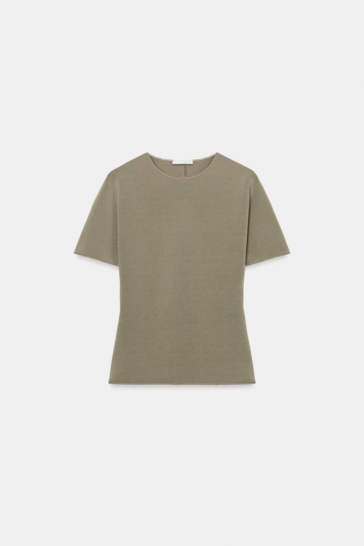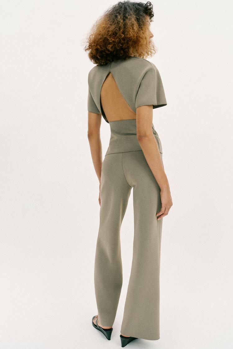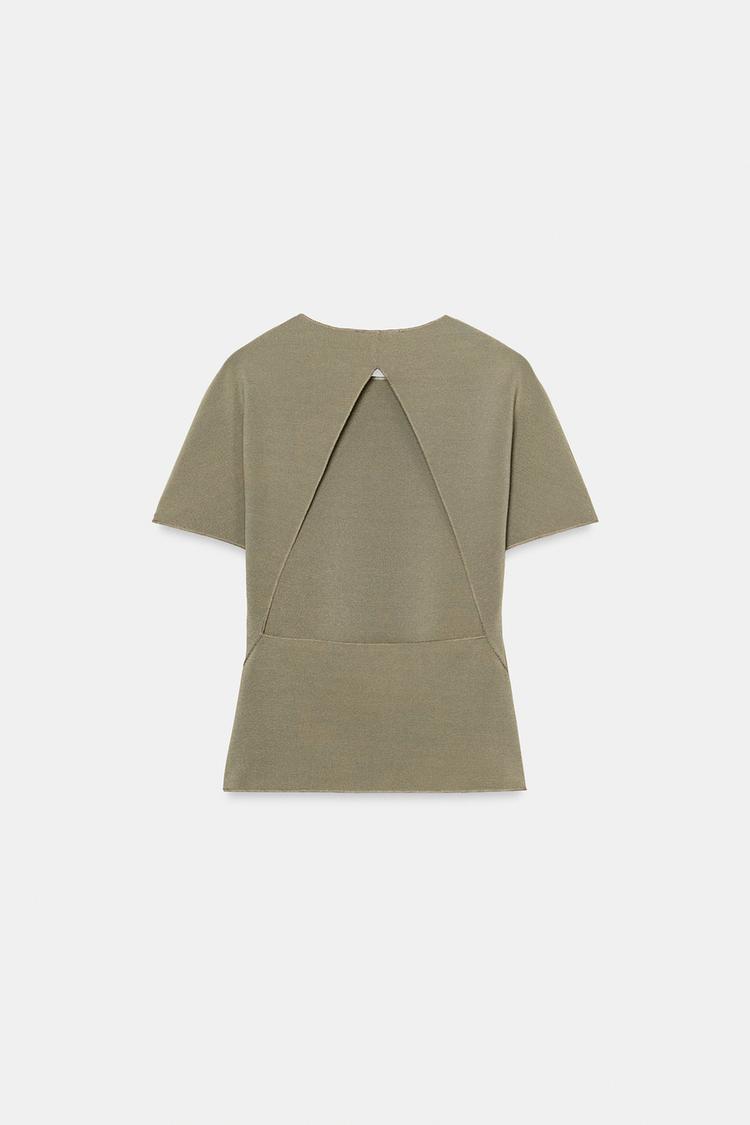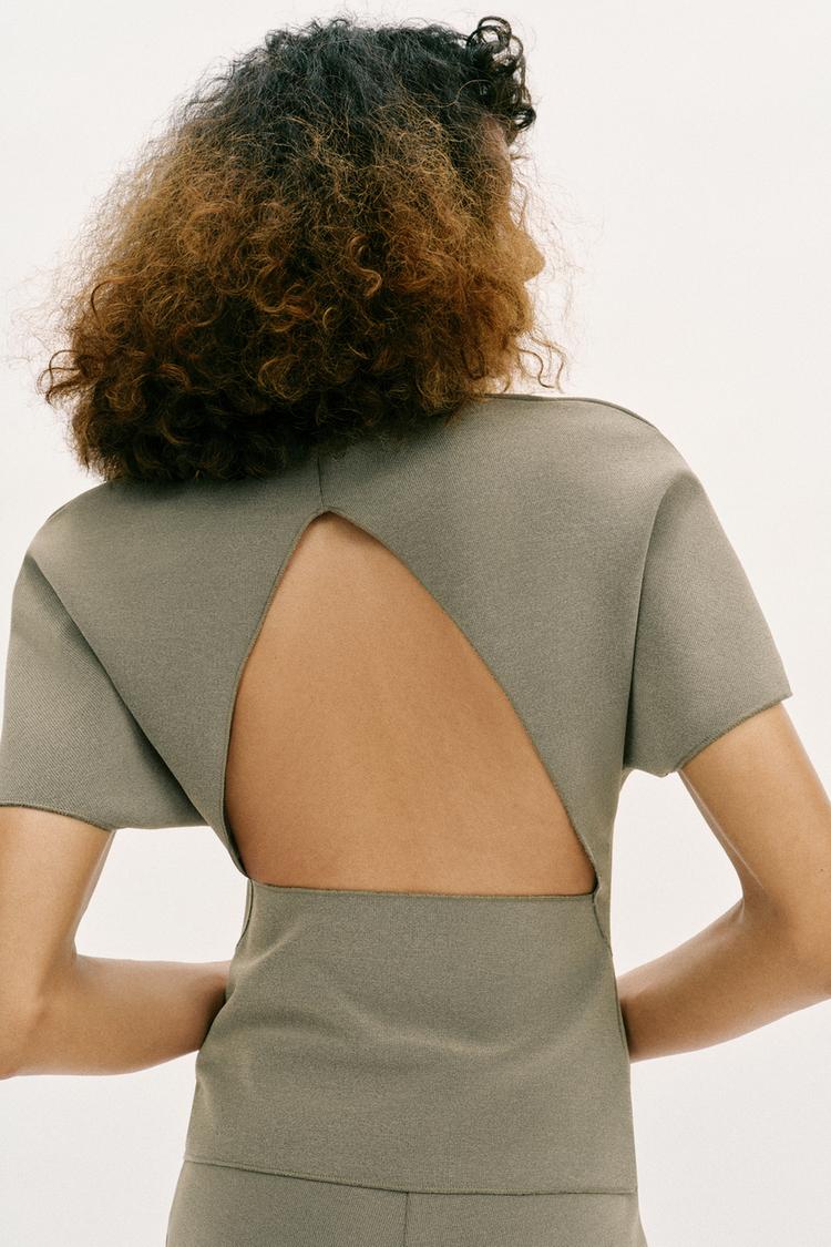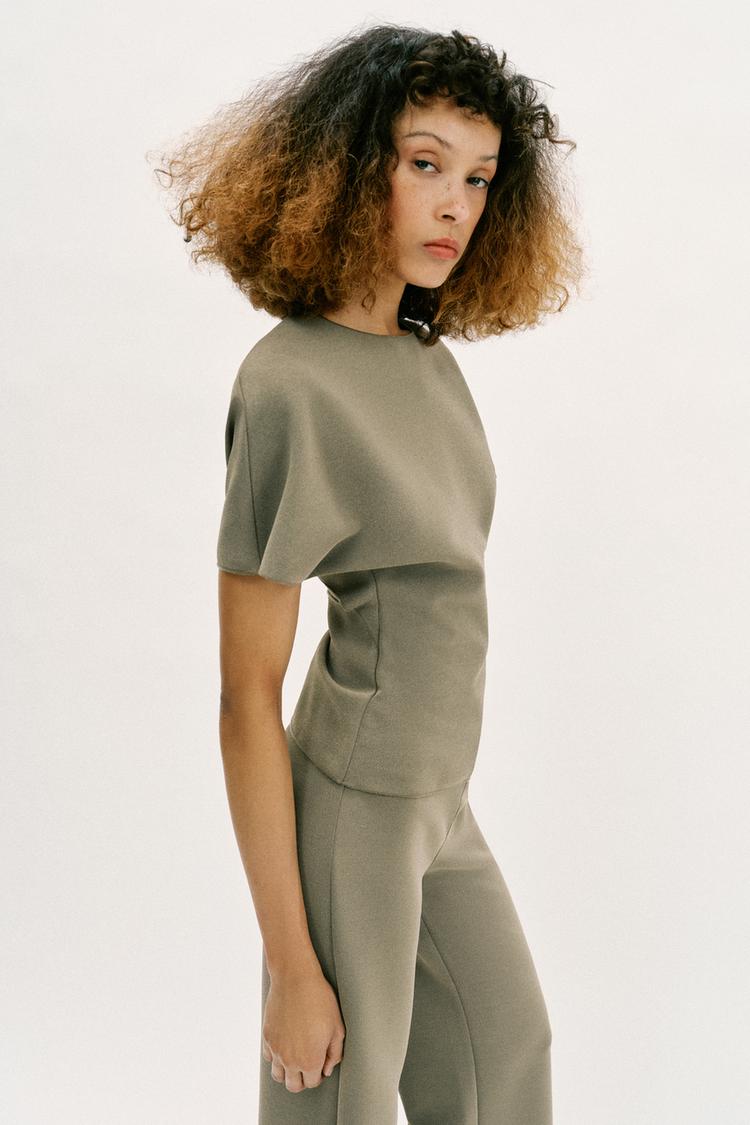 ZARA ТОП С ВЫРЕЗОМ И КОРОТКИМИ РУКАВАМИ, ХАКИ