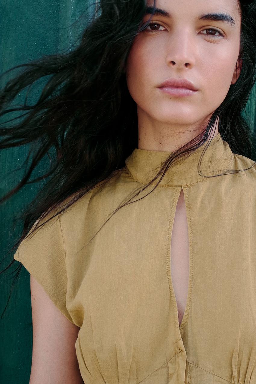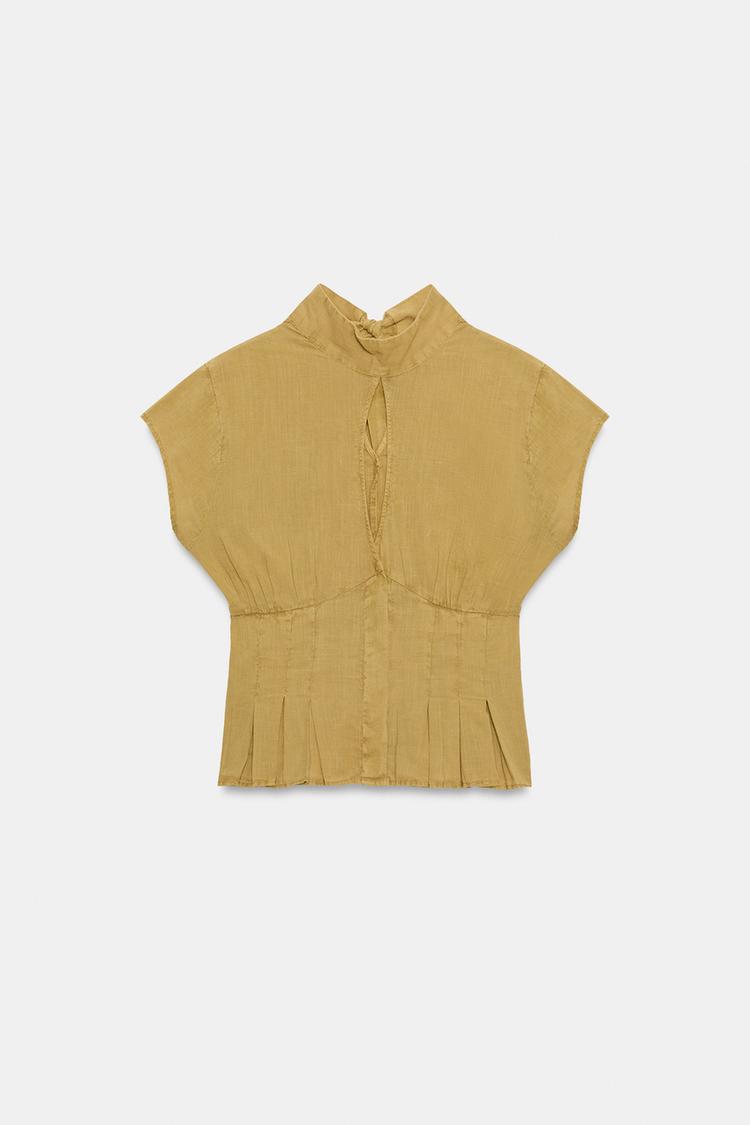 ZARA ТОП С ВЫРЕЗОМ И ЗАВЯЗКАМИ, КАРАМЕЛЬНЫЙ