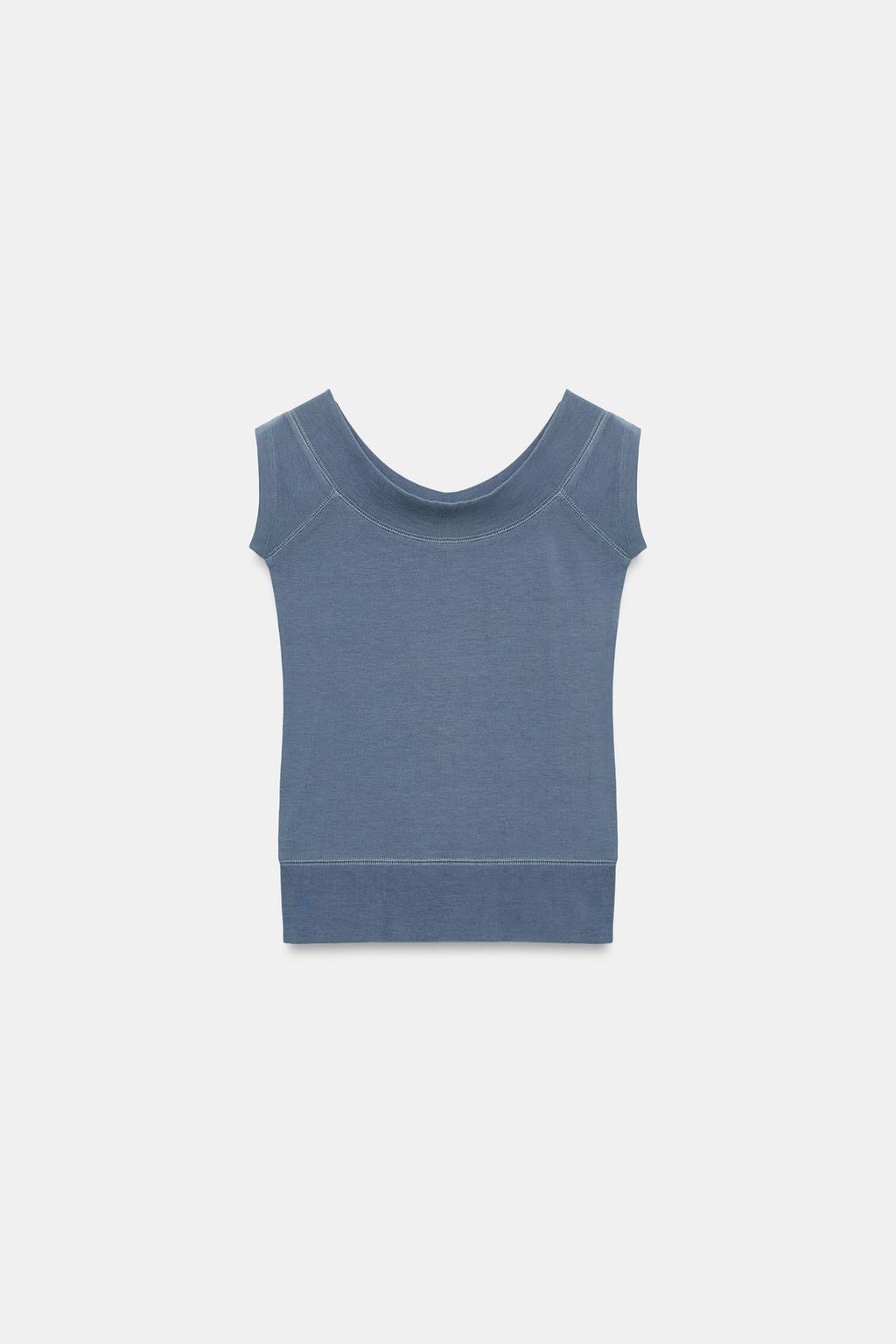 ZARA ТОП С ВЫРЕЗОМ «ЛОДОЧКА», ГОЛУБОЙ