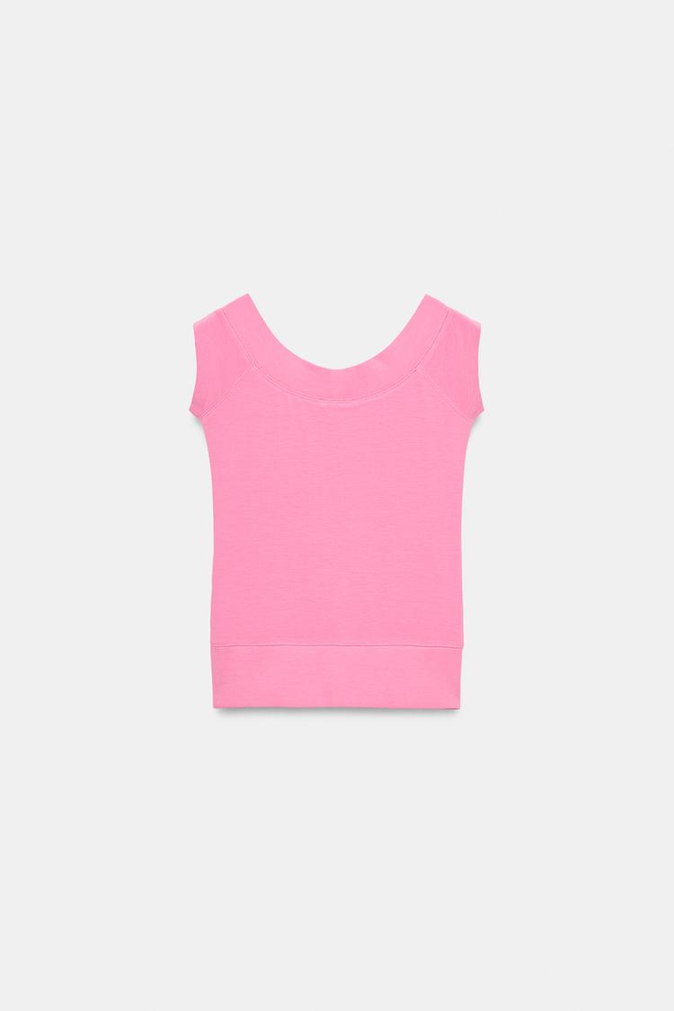 ZARA ТОП С ВЫРЕЗОМ «ЛОДОЧКА», ЦВЕТ РОЗОВОГО МЕЛА