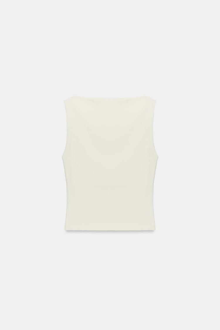 ZARA ТОП С ВЫРЕЗОМ ЛОДОЧКОЙ, ЭКРЮ