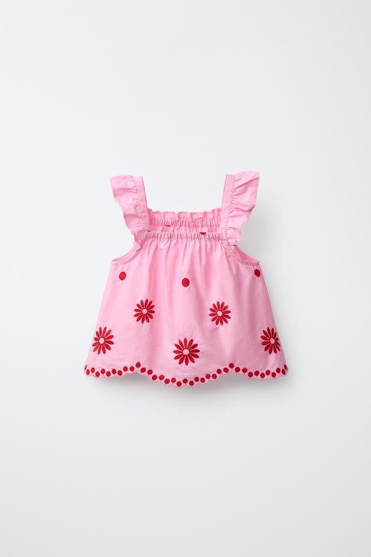 ZARA ТОП С ВЫШИВКОЙ, РОЗОВЫЙ